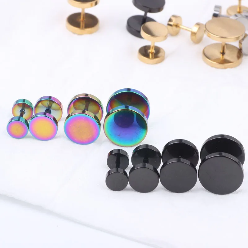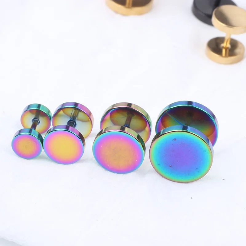 Геометрические круглые цветные серьги-гвоздики, ювелирные изделия из нержавеющей стали, серьги Радуга, креативные серьги для пирсинга