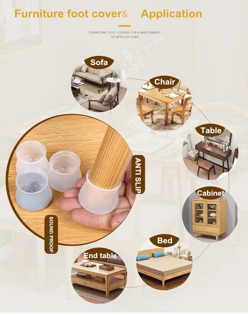 * Широкий Применение:Силиконовый материал обладает сильной эластичностью и не деформируется, поэтому размер универсален и подходит для большинства ножек стула. Широко используется на диване, чайнике, кровати, шкафу и т. д.