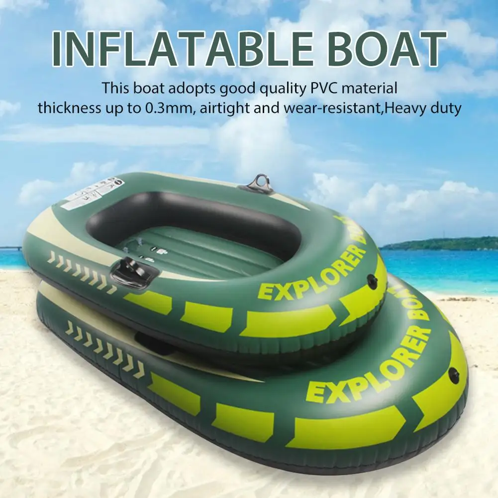 Пулевые точки:1. Сверхмощный: каяк двух размеров: 150*100 см, нагрузка: 55 кг; 188*114 см, нагрузка: 90 кг.2. Надувной дизайн: благодаря надувной конструкции эта лодка легко складывается. Чтобы вам было удобно хранить и переносить.3. Быстрое надувание и Дефляция: двойной клапан хорошо подходит для быстрого надувания и дефляции.4. Высокое качество: Изготовлен из высококачественного и прочного ПВХ материала, поставляется с толщиной стенок 0,3 см, надувная лодка устойчива к разрывам и истиранию, отличается высокой прочностью и не легко повредить.5. Широко используется: очень подходит для озер, рыбалки и побережья, рафтинга на открытом воздухе, рыбалки, путешествий, для родителей и детей и т. д.Особенности:1. Эта сверхпрочная лодка изготовлена из высококачественного ПВХ материала толщиной до 0,3 мм, воздухонепроницаемого и износостойкого.2. Надувная конструкция; Легко складывается для удобного хранения и транспортировки.3. С двумя креплениями для лопастей может удерживать лопасть для экономии труда.Спецификация:Материал: ПВХЦвет: зеленыйПодходит для: 2 человек/1 человекНагрузка: 90 кг/55 кгРазмер: прибл. 114*188 см/45x74 дюйма/150*100 см/59x39 дюймовВес: прибл. 1615 г/960 гКомплектация:
