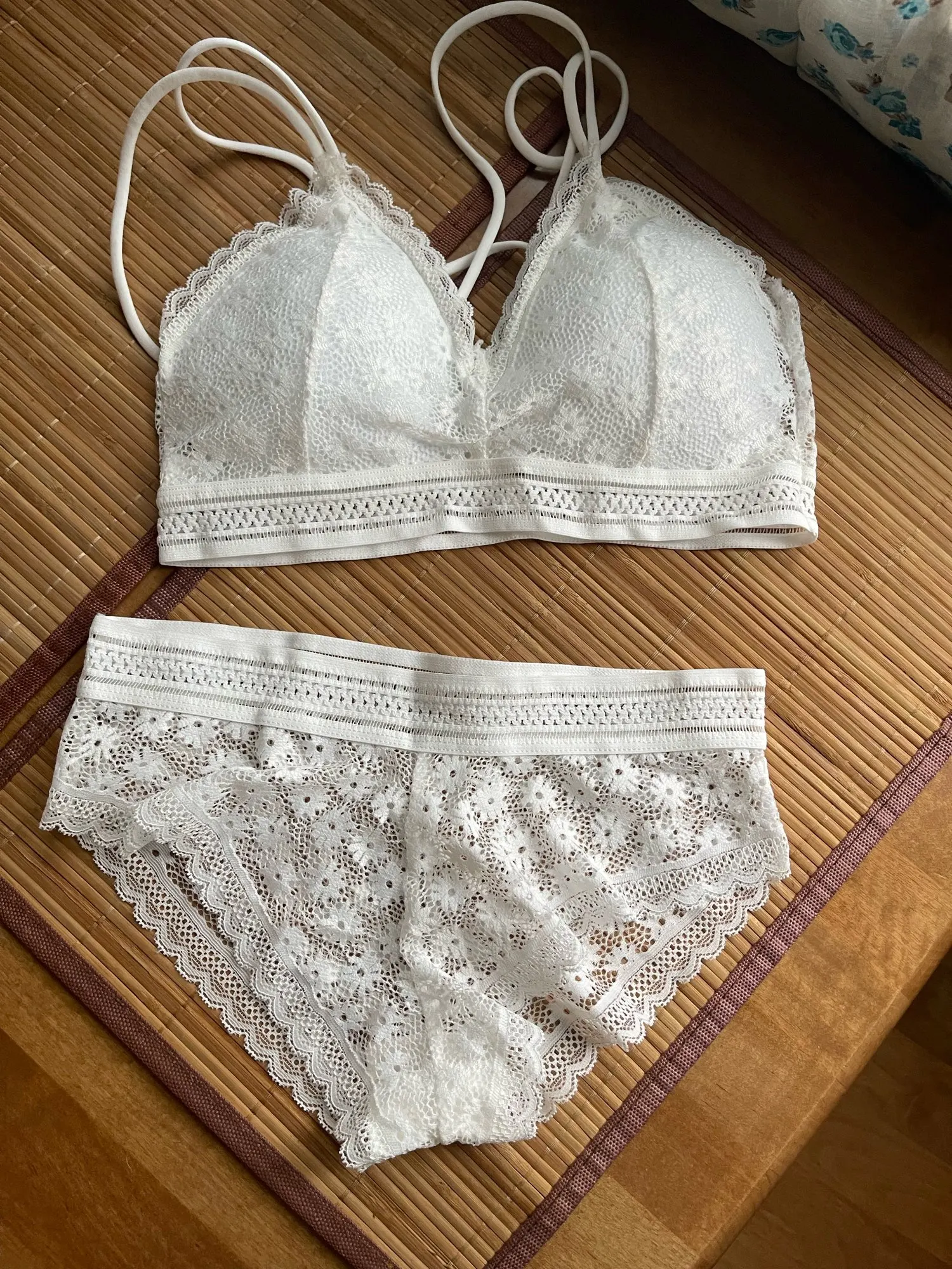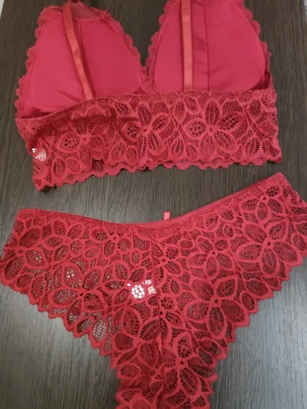 Шикарный набор за такую цену . Все аккуратно прошито, нитки не торчат. Очень приятный на ощупь. Нежное кружево. Заказывала на параметры : ОБ 87см, ОБ 98. Все подошло ( возможно топ лучше подойдёт на меньший объем). В топе можно вынуть чашечки. Набор удобный, красивый, нигде не давит. Писала продавцу чтобы изменить цвет набора, все поменял, отправил быстро. Не первый раз заказываю в этом магазине, честный, ответственный продавец. Рекомендую