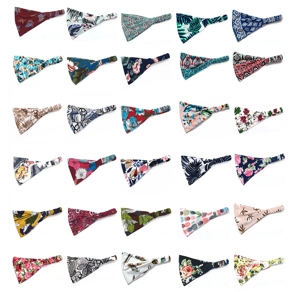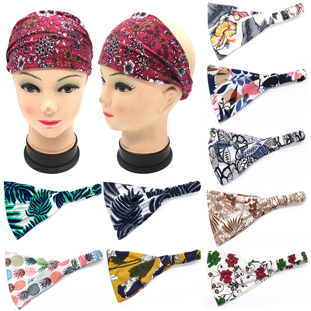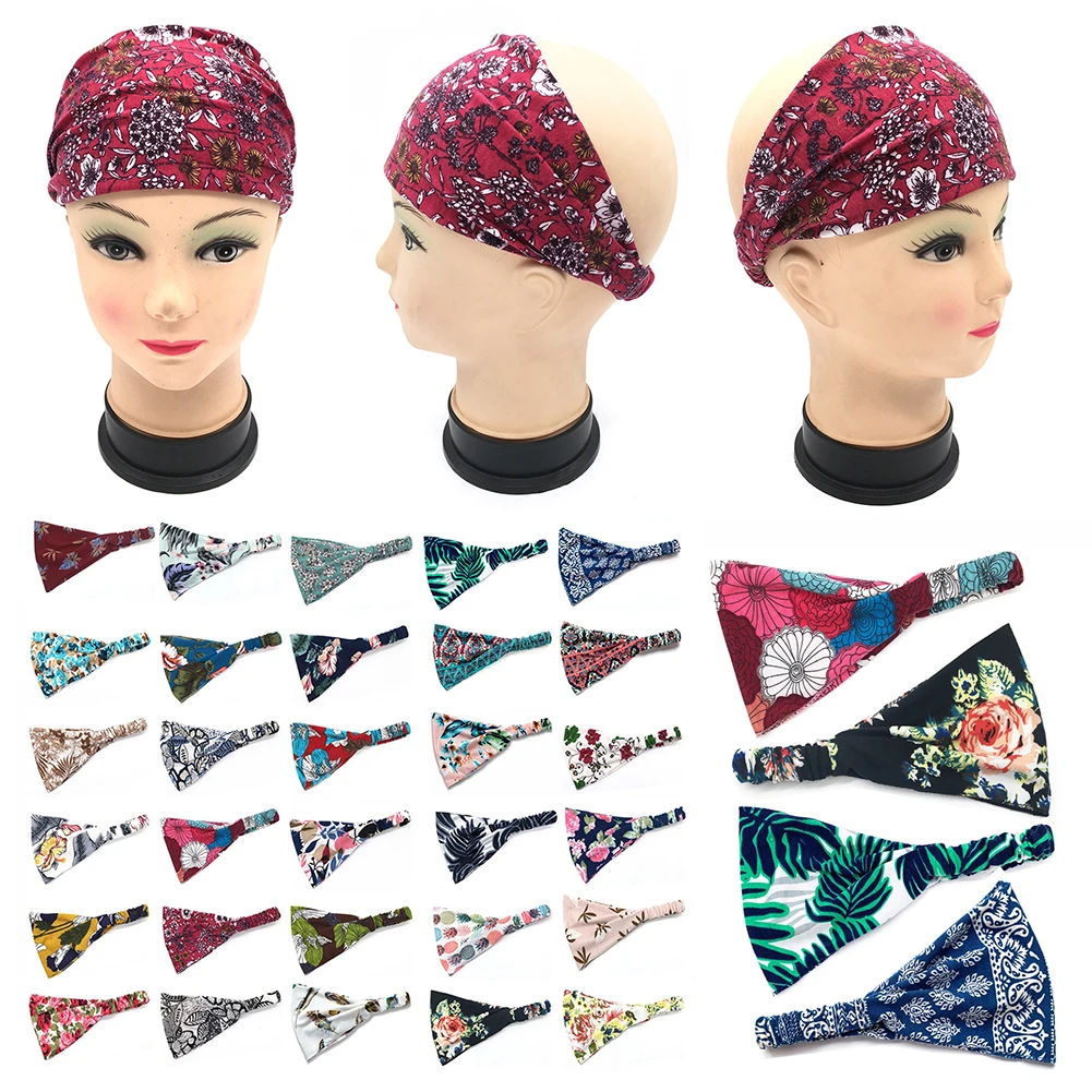 Повязка для волос в стиле бохо женская, широкая эластичная хлопковая головная повязка с принтом для занятий спортом, йогой, цельный тюрбан, аксессуары для волос