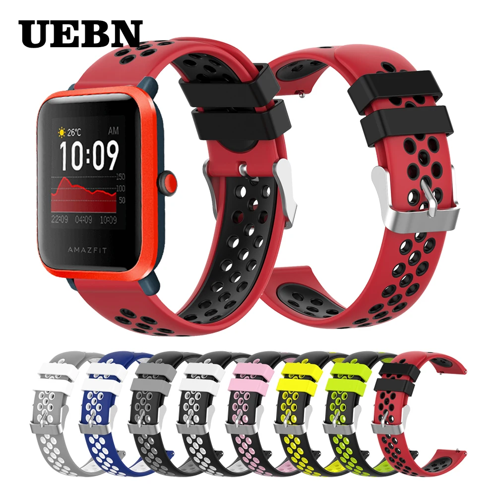 UEBN 20 мм спортивные силиконовые Замена дышащая повязка для Huami Amazfit bip S браслет ремешок для смарт-браслета Amazfit GTS GTR 42 мм ремешок для часов