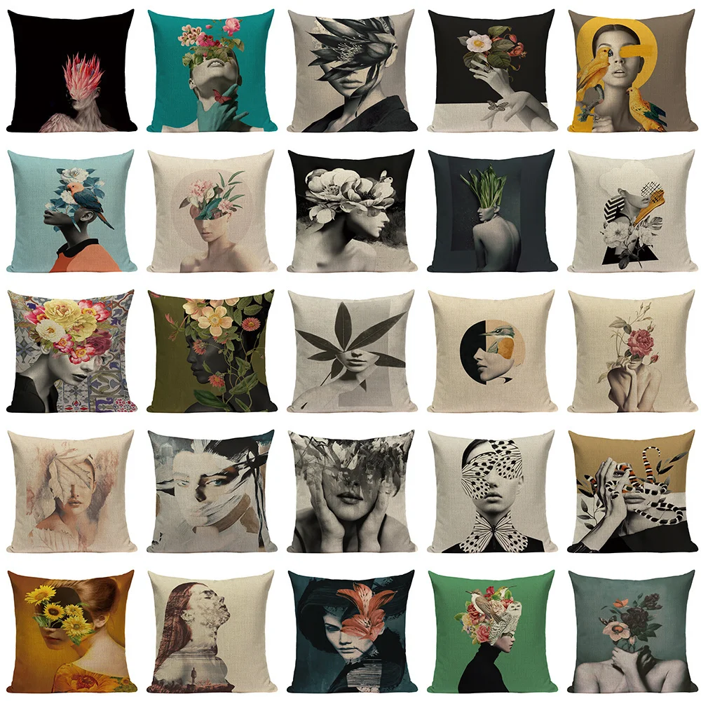 Винтажная Подушка с изображением женщины, чехол для абстрактной девушки, декоративная подушка, чехол, льняная цветная наволочка для дивана, домашний декор, Cojines