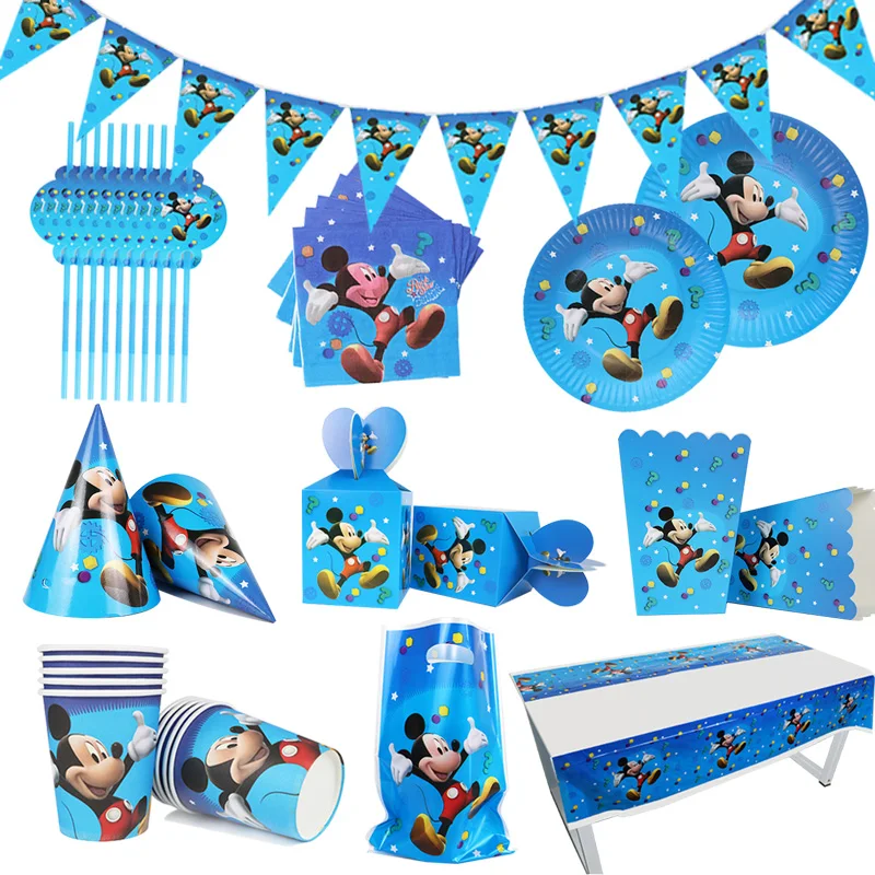 Набор украшений для вечевечерние в стиле Диснея Микки Мауса, бумажный стаканчик, тарелки и соломки кепки, Детский комплект для дня рождения для девочек