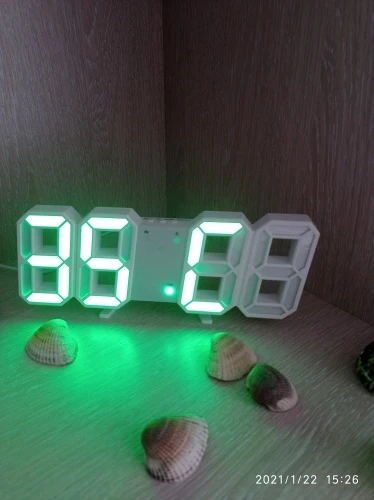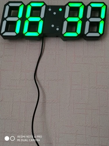Быстрая отправка и доставка. Часы достаточно ярки. Ночью комфортно затемняются. Кабель питания(usb) 2 метра. Батарейка внутренней памяти в комплекте. Есть крепёж на стену.