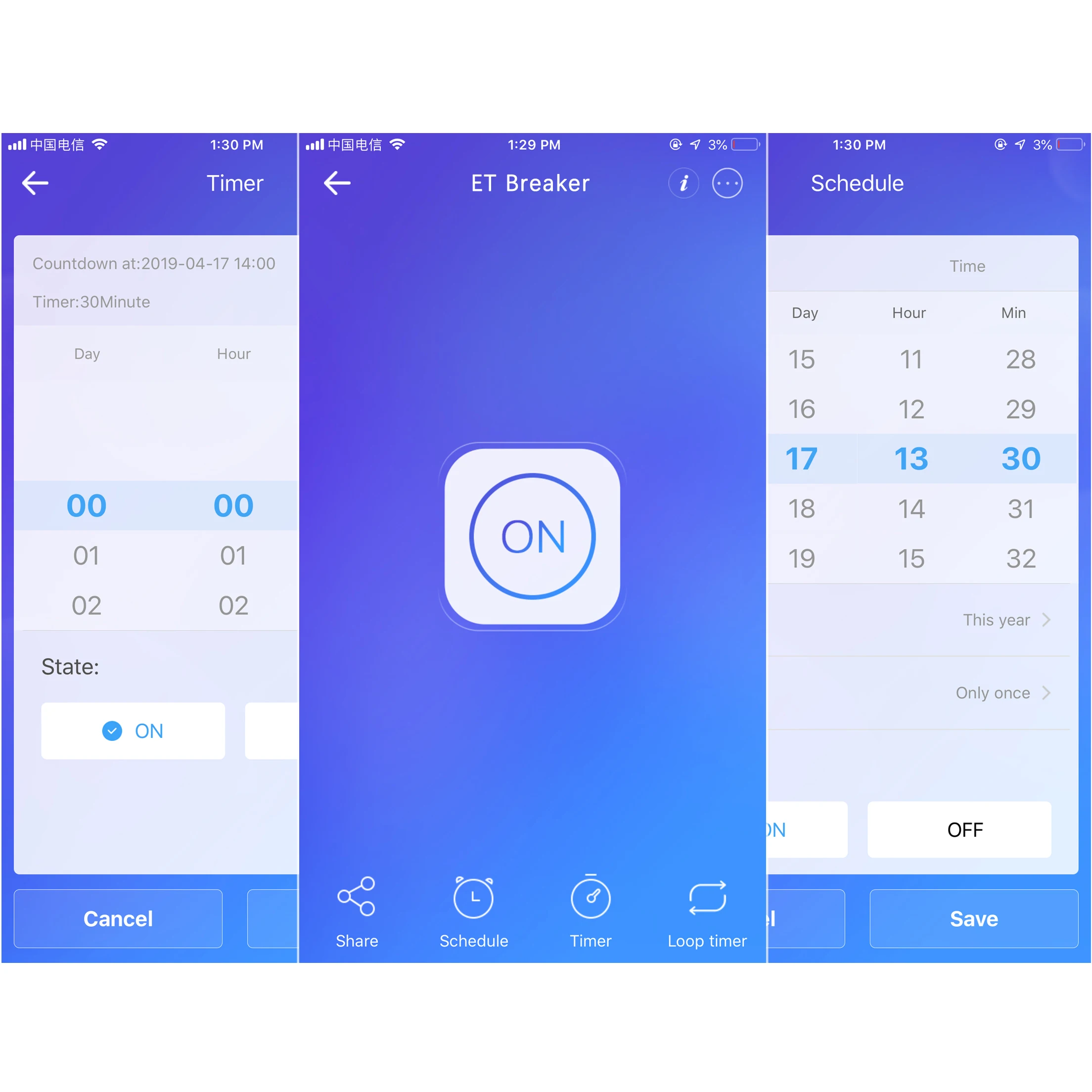 Вы можете напрямую подключить этот автоматический выключатель к маршрутизатору Wi-Fi, концентратор или шлюз не требуется. С помощью этого wifi-выключателя cirleather вы можете отключить питание или получить доступ к питанию в любом месте в любое время в приложении. Вы также можете установить шнур для автоматического включения/выключения устройства. Этот автоматический выключатель Wi-Fi также поддерживает Голосовое управление с помощью Alexa и Google home, освобождает руки и наслаждайтесь жизнью.