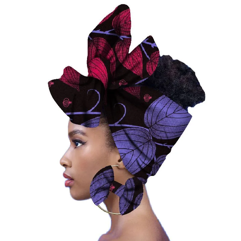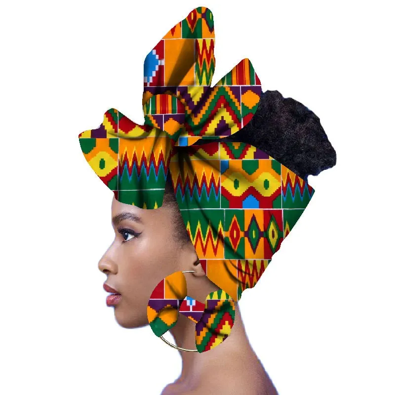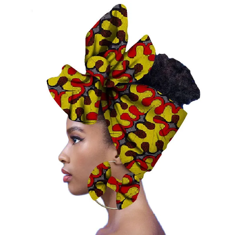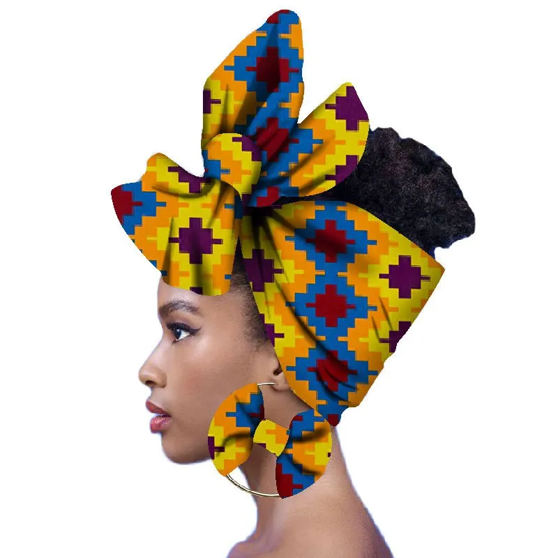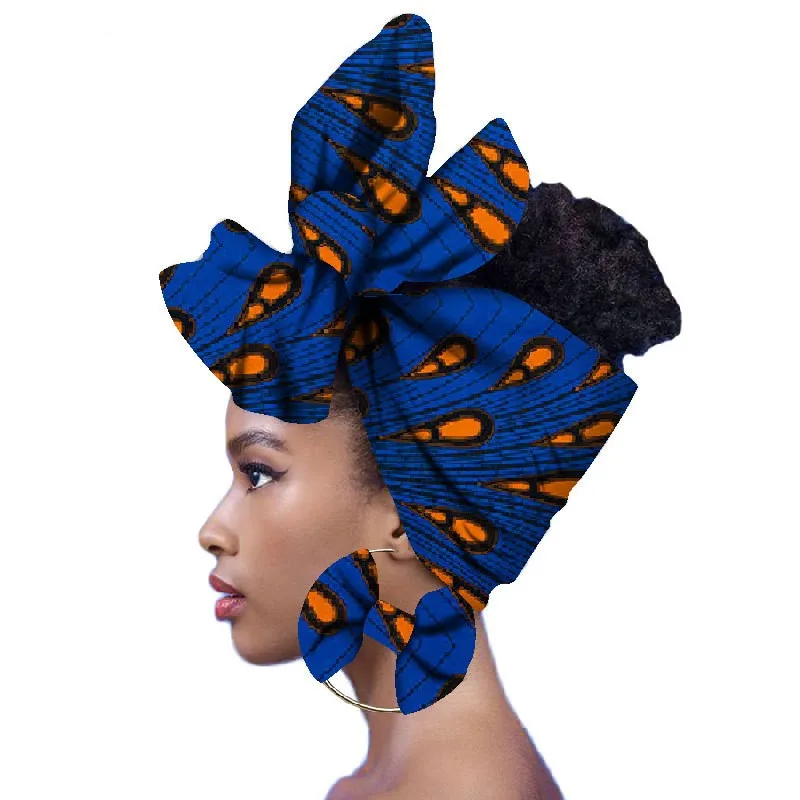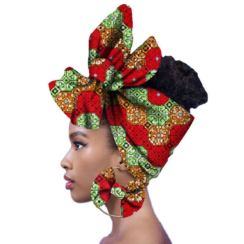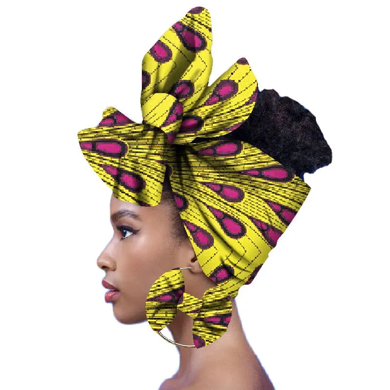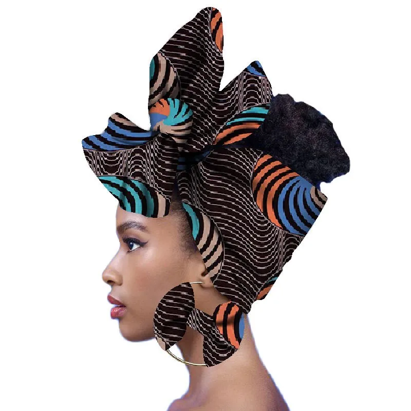 Модный Африканский головной платок и серьги 2020, комплект из 2 пре...