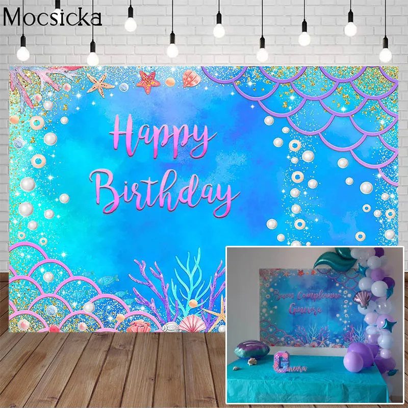Фон на день рождения русалки синий подводный мир фон для фотосъемки новорожденных детей фоны для фотостудии коралловые морские водоросли