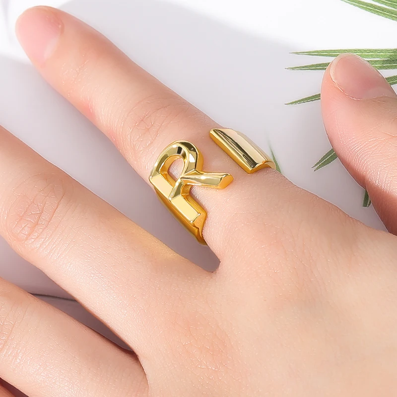 Кольца с буквами A-Z регулируемое из нержавеющей стали для женщин, ...