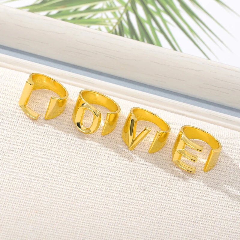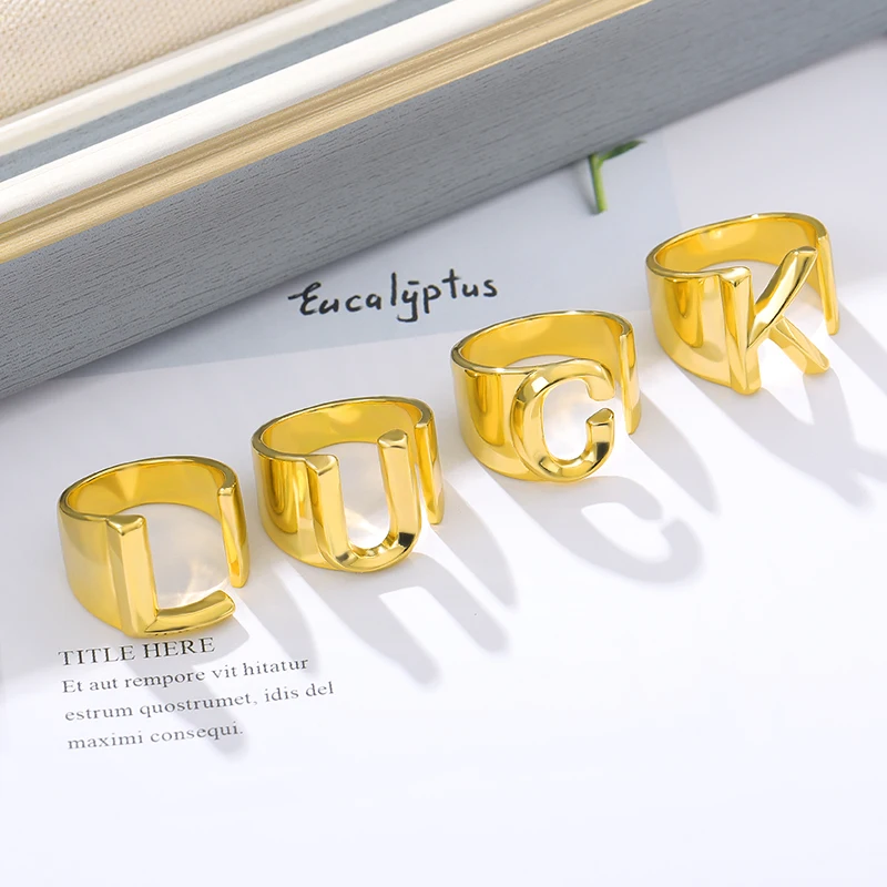 A-Z с буквенным принтом, широкое начальное кольцо для женщин и мужчин, золотистого цвета, открытое мужское женское кольцо, модное обручальное ювелирное изделие для свадебной вечеринки