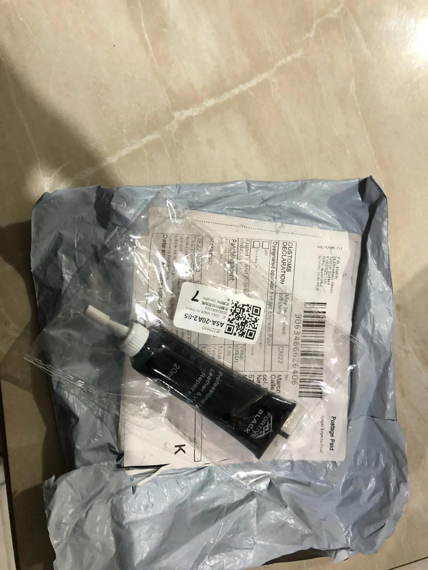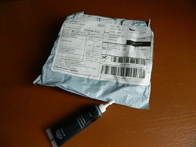 Получил посылку довольно быстро. Тюбик не полупустой. Неплохо справился с дыркой в 5мм на декоративной обивке внутренней ручки автомобильной двери.