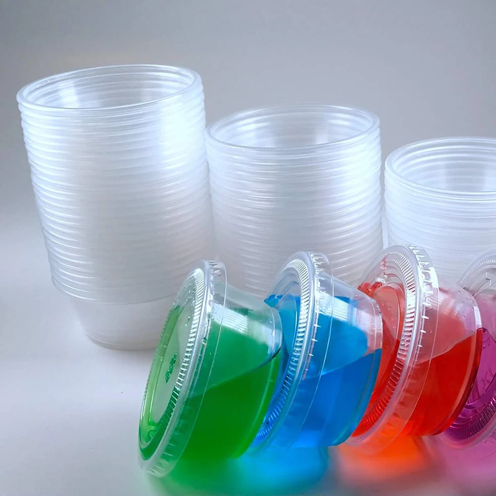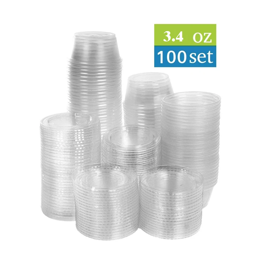 (3,4 унции. 100 комплектов) одноразовые пластиковые чашки с крышками, чашки для приправ, желатиновые чашки, прозрачные чашки для образцов