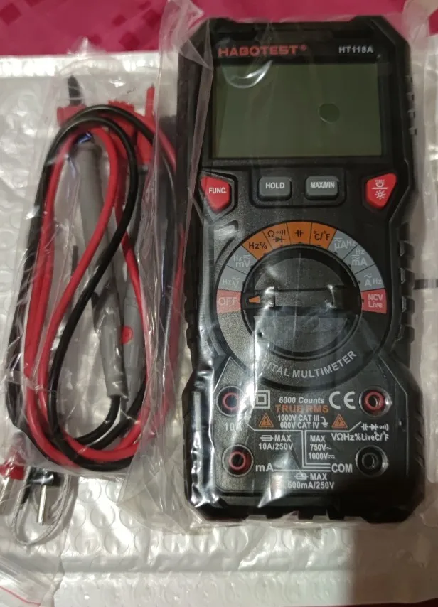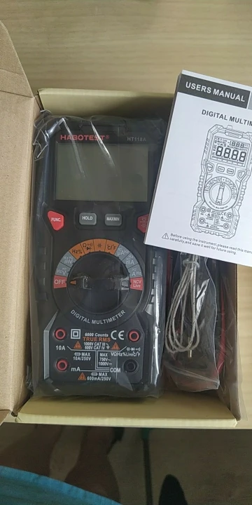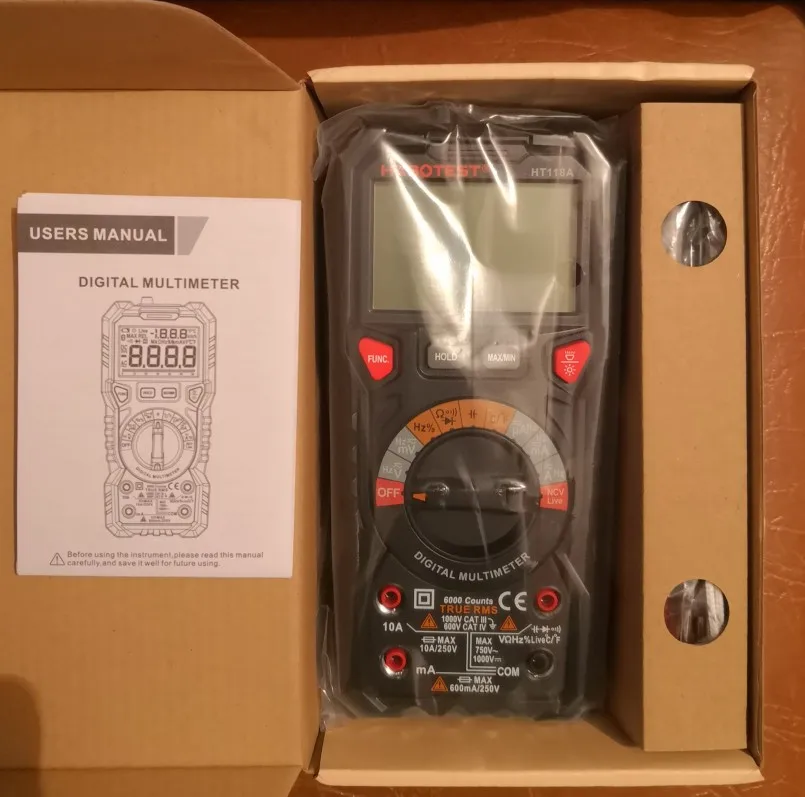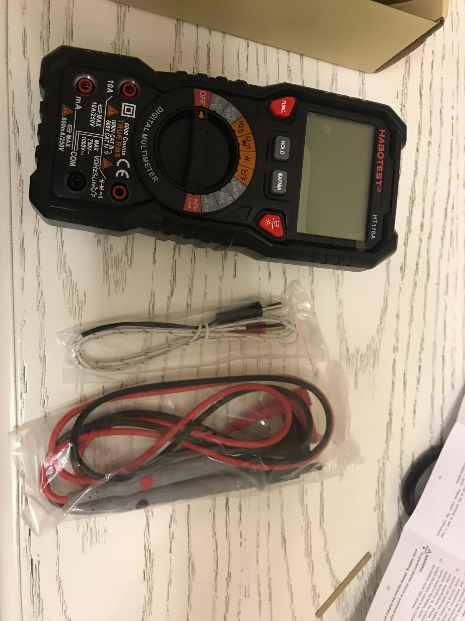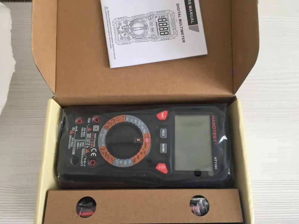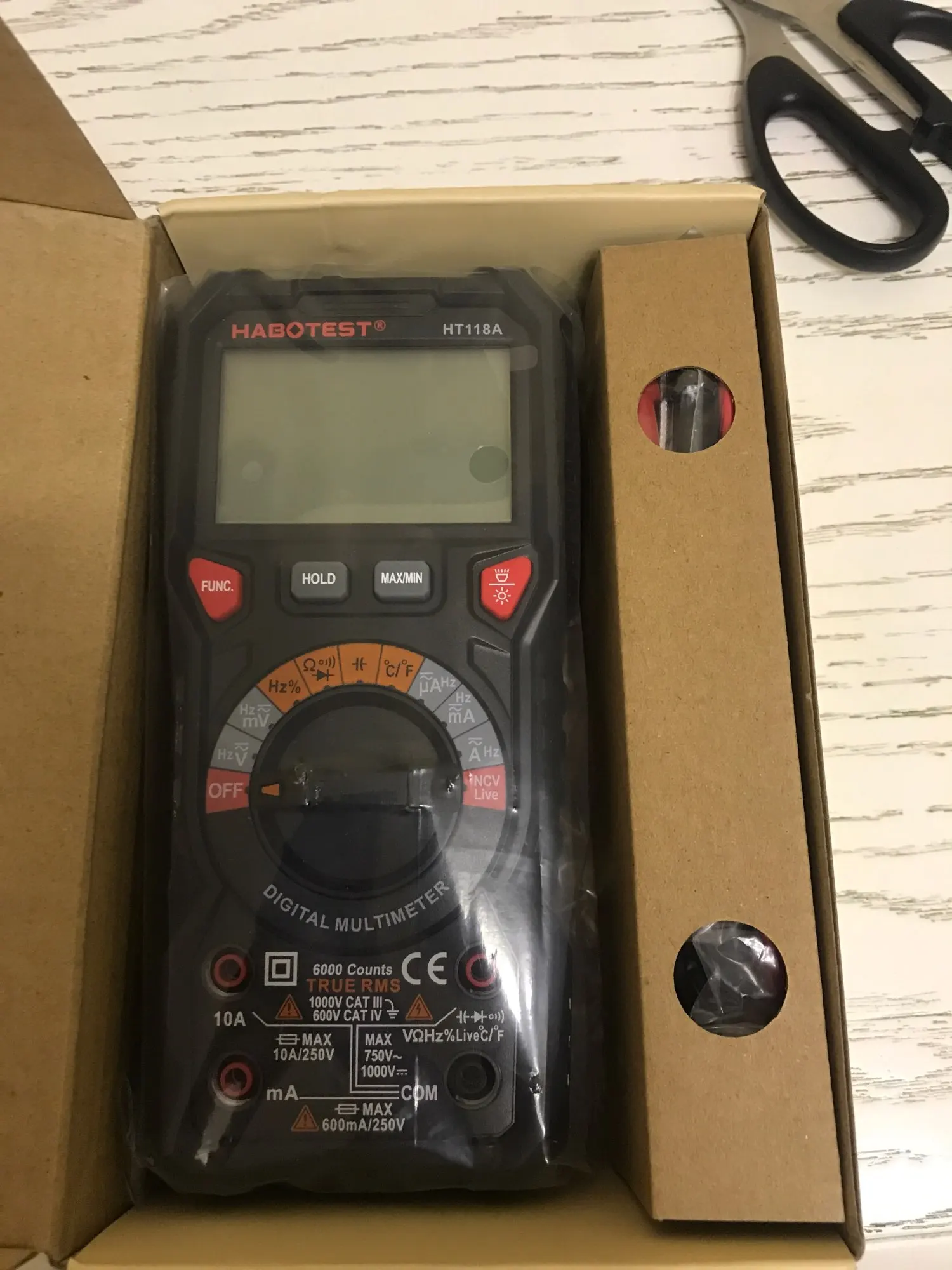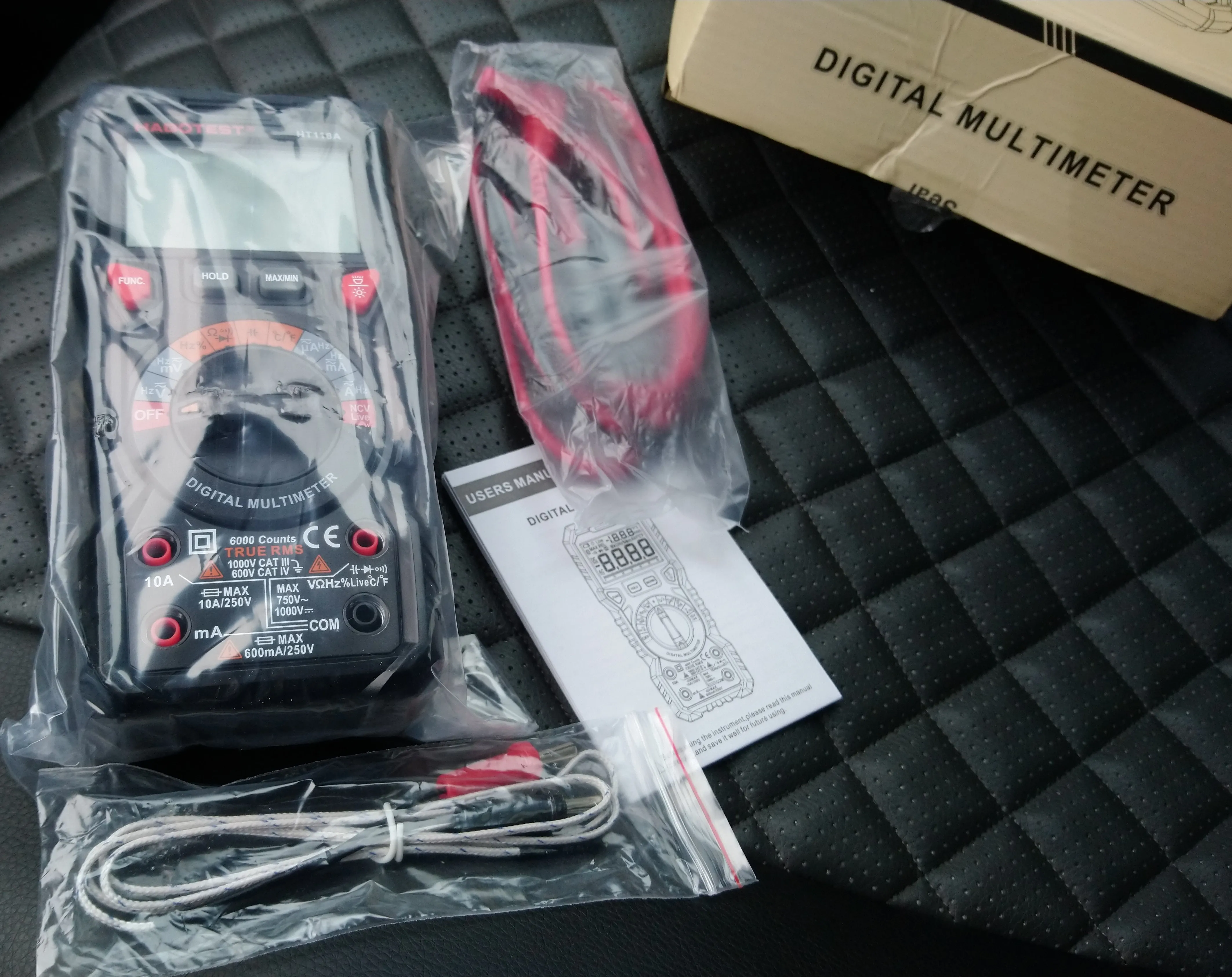 Отправили заказ быстро, доставка без задержек. Упаковка простая, без замятия картонной коробки в пути не обошлось, но мультиметр не пострадал, функционал в полном порядке. Несколько смутила конструкция термодатчика. Спасибо.