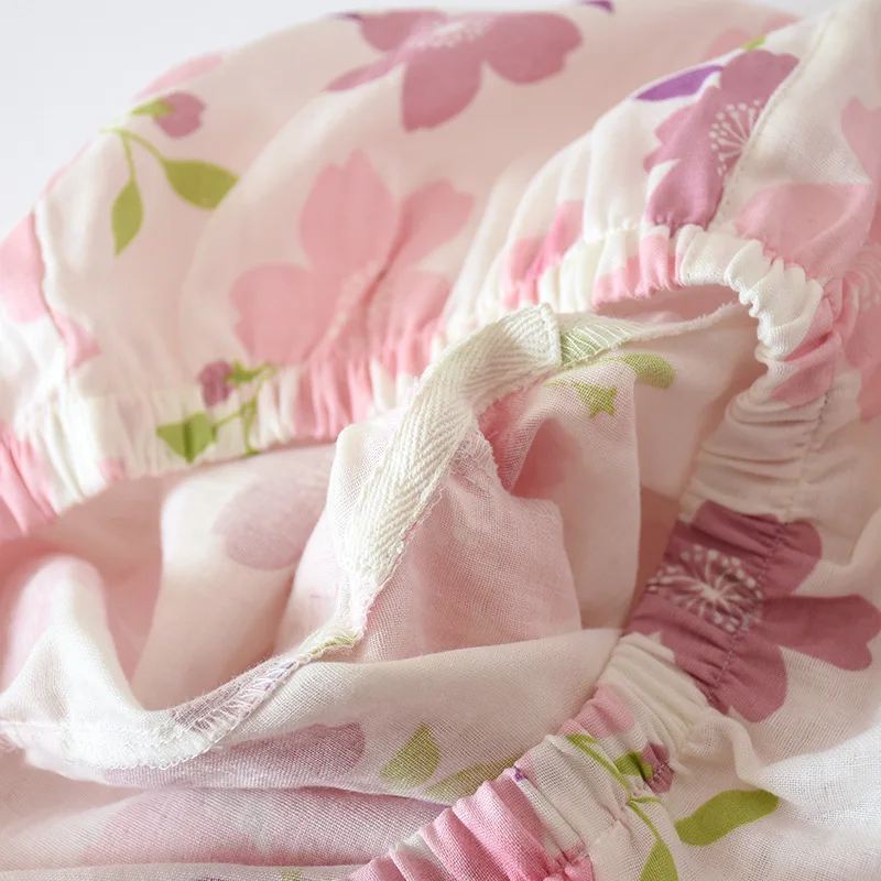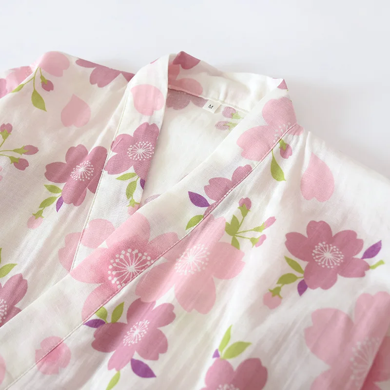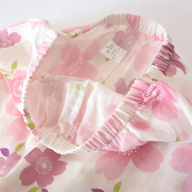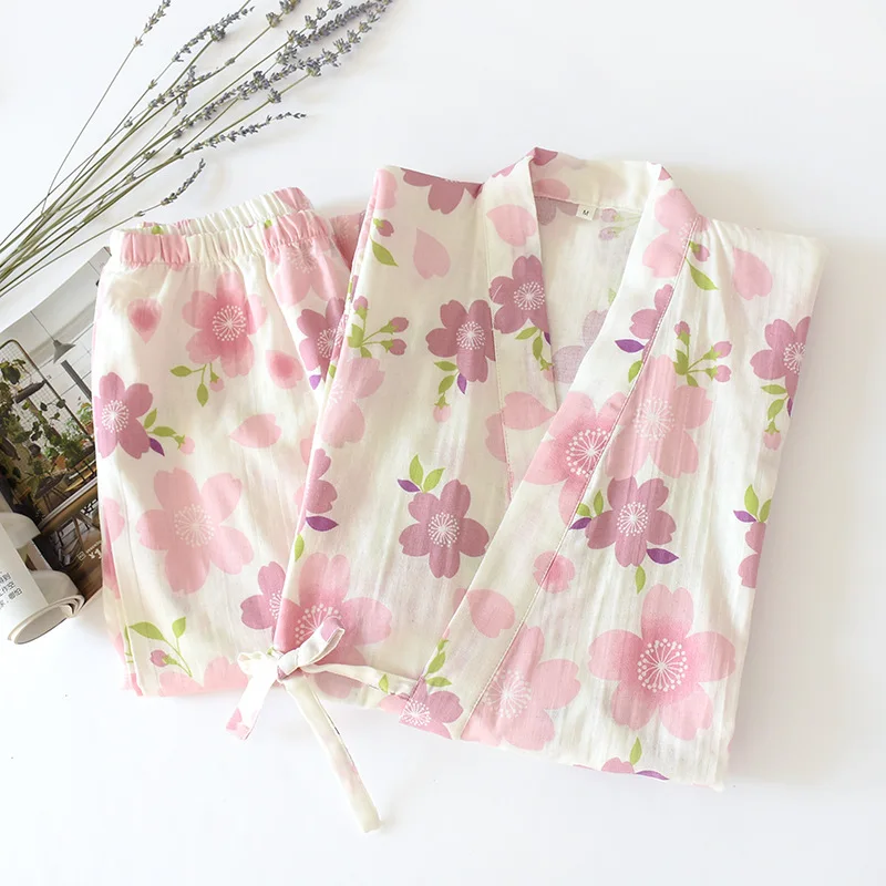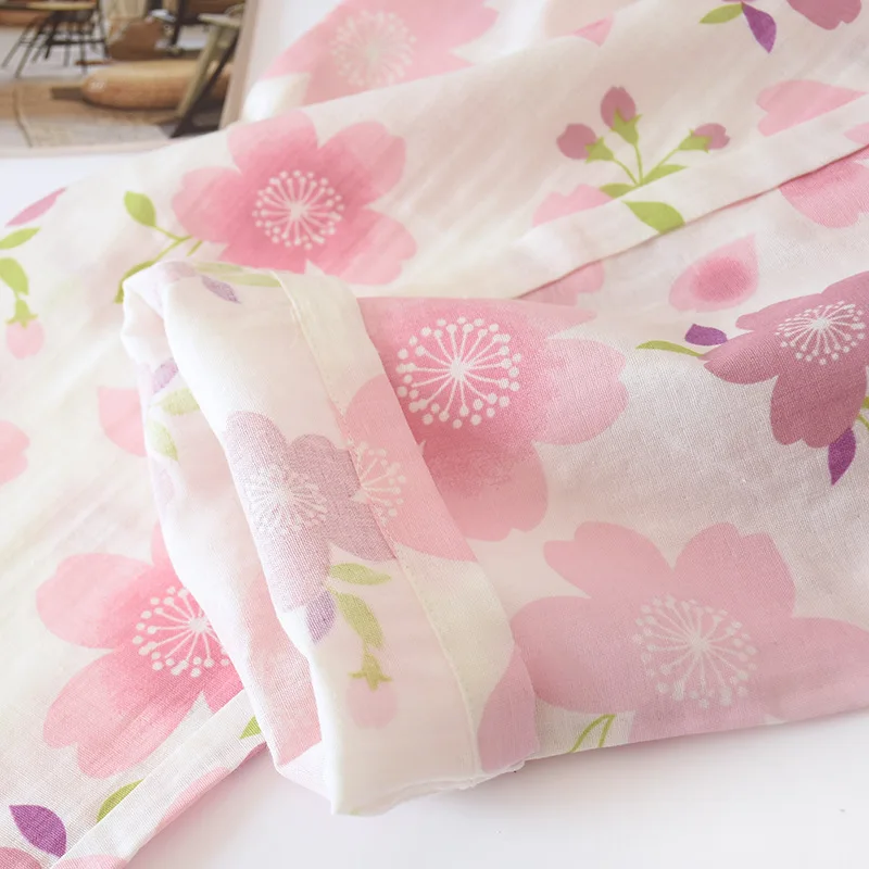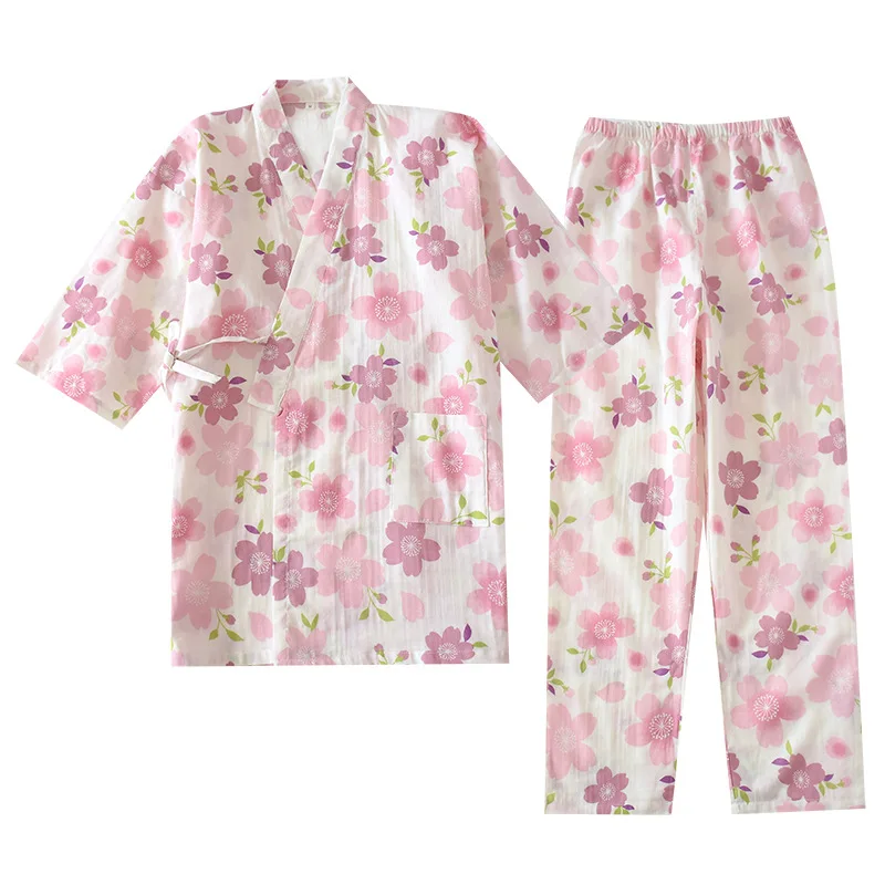KISBINI хлопок женская пижама с коротким рукавом и набор Сакура с принтом + длинные штаны с принтом в виде Топы Женская домашняя одежда японский стильная пижамы из хлопка, одежда для сна