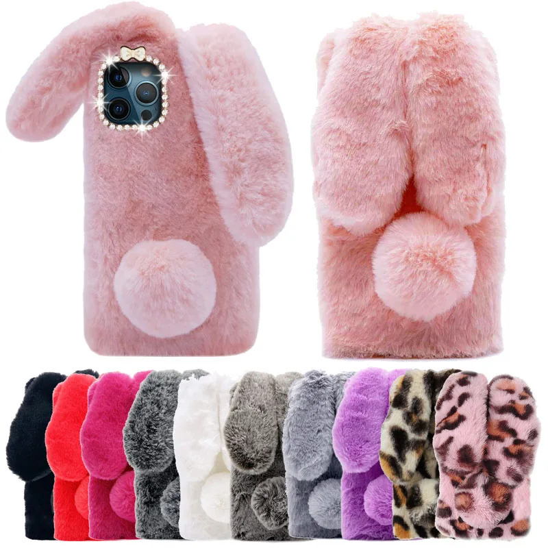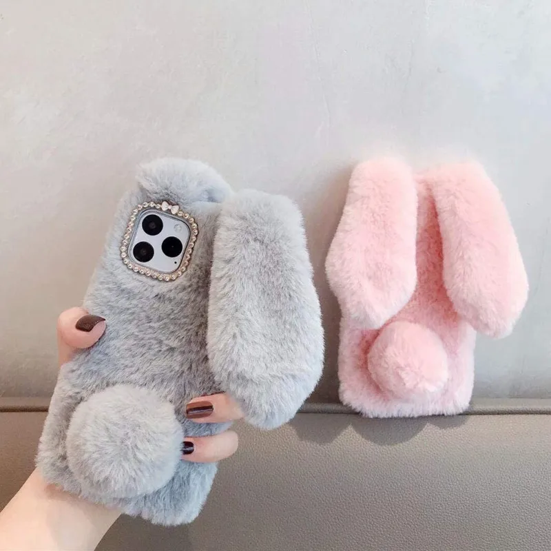Блестящий бриллиантовый плюшевый чехол с кроличьими ушками для Sams...