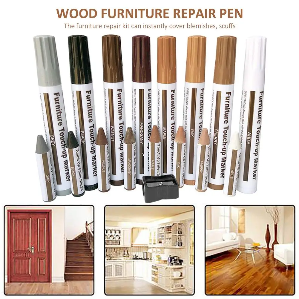 Набор для подкрашивания мебели, маркеры, наполнители, палочки, древесные царапины, восстановление царапин, ручка для рисования древесины, композитный ремонтный набор
