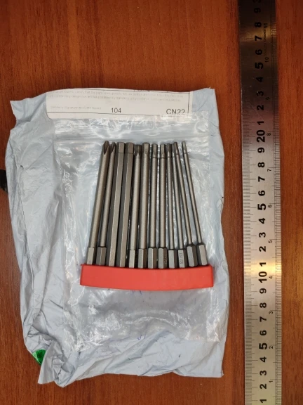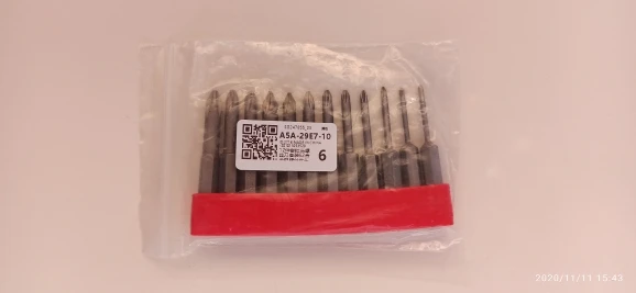 Дошло до Ульяновска примерно за 20 дней, что в условиях пандемия я считаю хорошо, качество на первый взгляд отличное, учитывая что такие биты в моем городе не найдешь я доволен, но есть замечания к условиям хранения и доставки. 1) 2-3 биты со следами поверхностной коррозии (неприятный факт) 2) посылка была плохо упакована!!! 2 сквозные дыры, через которые я без разрывов вытащил 2 комплекта головок, а могли они и потеряться в дороге, украсть тоже могли... странно советую в этом разобраться!
