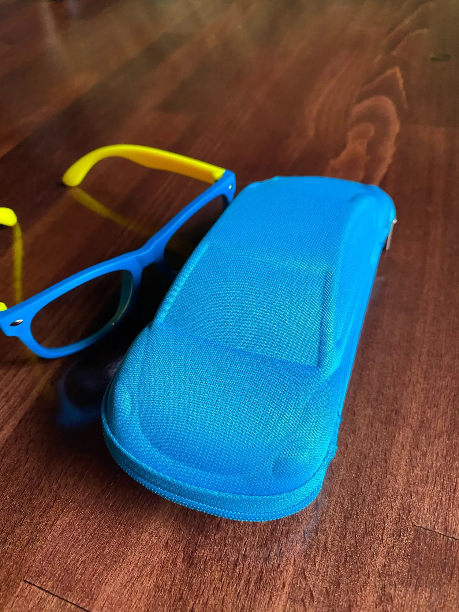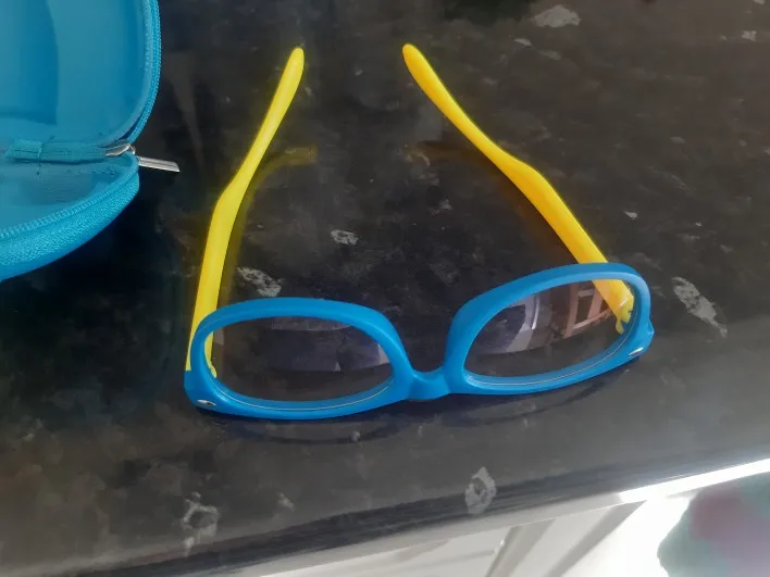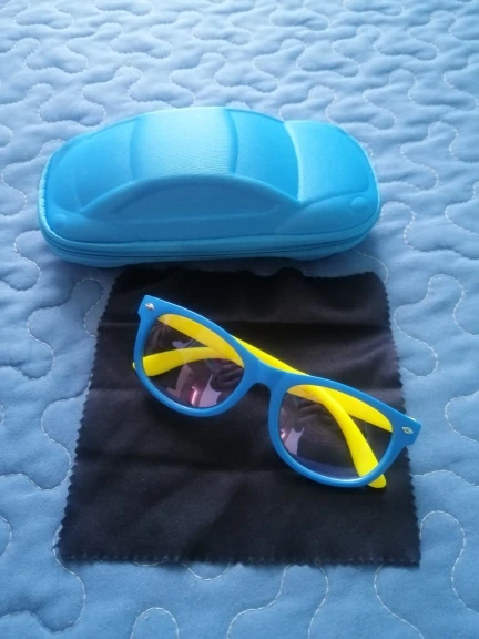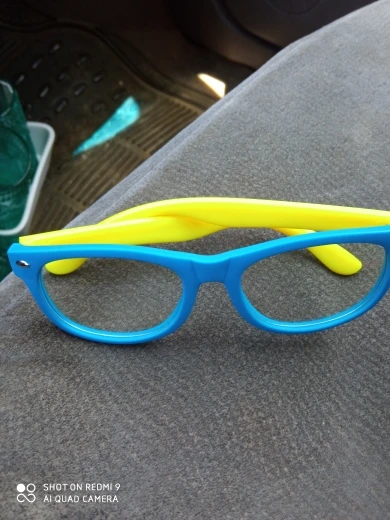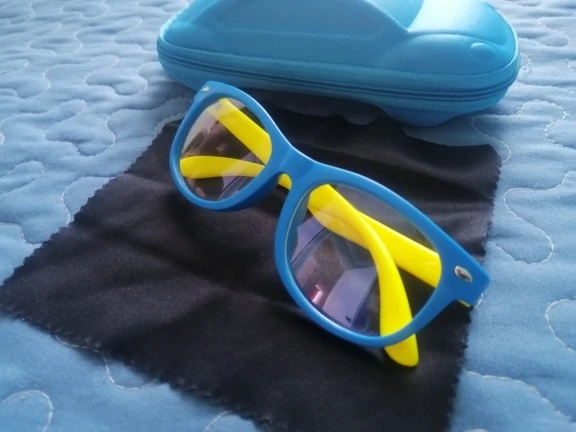 сыну понравились очки, не темные и не жёлтые. мультики видно хорошо в них ) чехлом не пользуется. внутри салфетка протирать