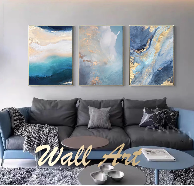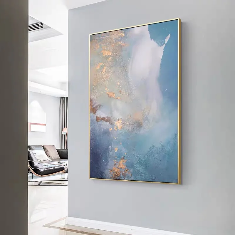 Настенная картина, искусственная мраморная Золотая фольга, синий цв...