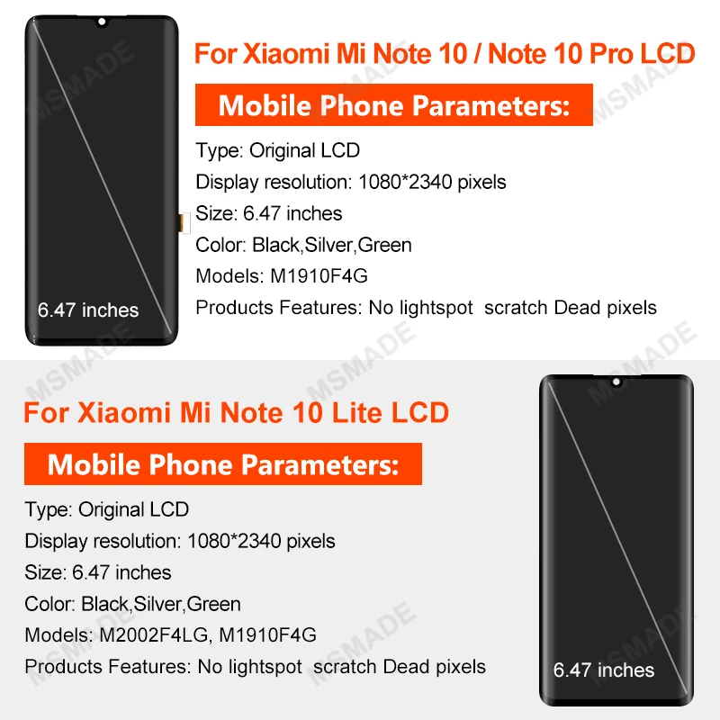 1. Оригинальный качественный ЖК-экран в сборе дляXiaomi MI NOTE 10 / Note 10 Pro / Note 10 Lite / CC9 Pro