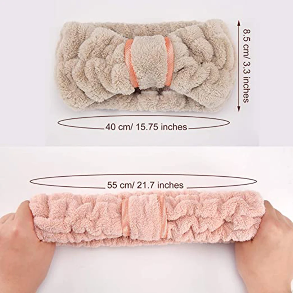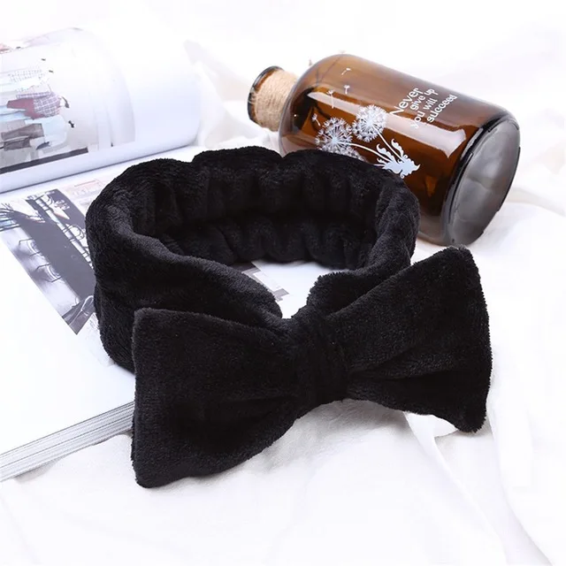 Повязка на голову из кораллового флиса с бантом для мытья лица, женская маска для ванны для девушек, косметическая повязка для волос, эластичная мягкая искусственная кожа