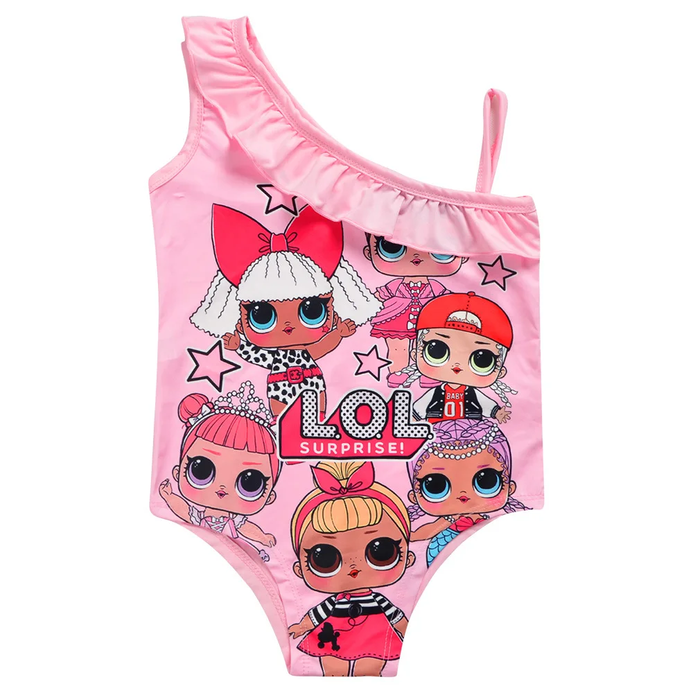 Купальник для девочек 3-10 лет, с мультяшным принтом, новый летний купальник для девочек с листьями лотоса, Цельный купальник, бикини, детская пляжная одежда, купальные костюмы