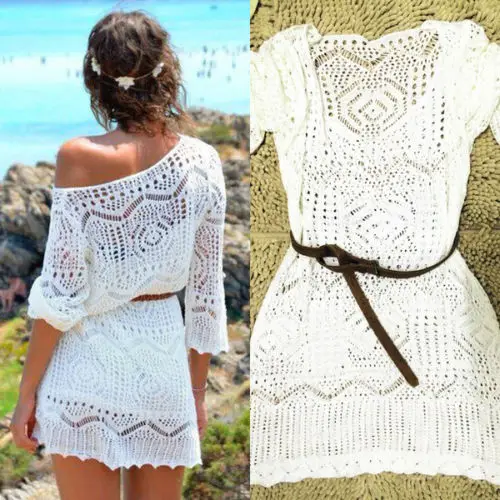 Женское кружевное вязаное крючком бикини, накидка, купальник, мини-платье!