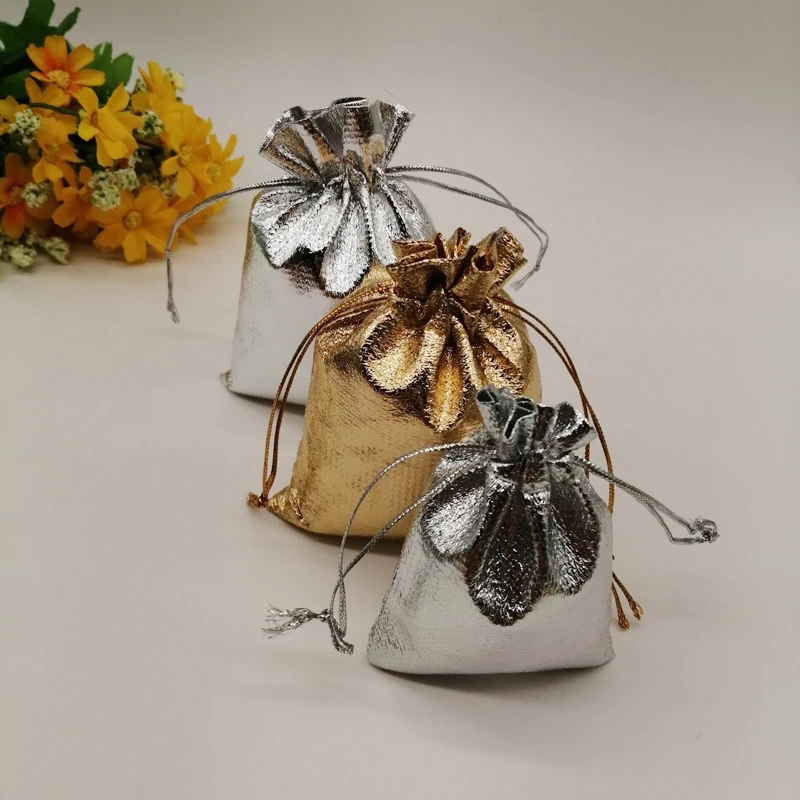 50 шт. сумка на шнурке золотистого и серебряного цвета тканевая упаковочная сумка алюминиевая фольга тканевая сумка Свадебная сумка для ювелирных изделий для упаковки ювелирных изделий дисплей