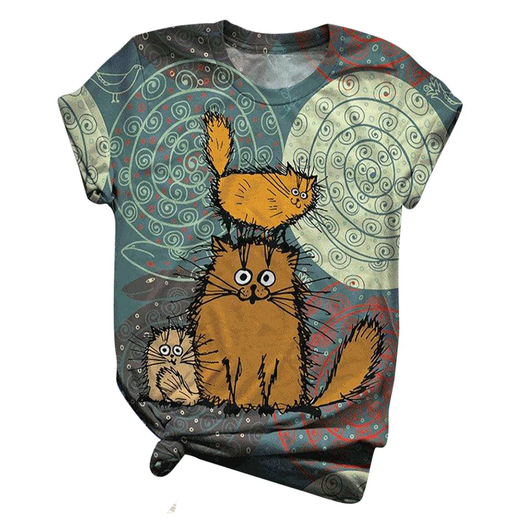 Женские футболки в стиле Харадзюку, топы 2020 размера плюс, женские футболки с коротким рукавом и круглым вырезом с 3d принтом животных, Футболка # T2G