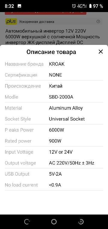 Хороший преобразователь. УШМ на 900Вт тянет без проблем, даже кулер не включается. Очень большая просадка не родных проводах, я бы заменил. Защиты отрабатывают. По входному напряжению максимальное 15.5v минимальное 9v. Защиту от переплюсовки не пробовал- стремно, но вроде как она есть. По перегрузке тоже защита имеется. В целом товаром очень доволен, думаю брату понравится. Правда в Белгородскую область шло чуть больше недели, хотя была доставка из России. Ну это в общем то и не важно) продавца рекомендую)