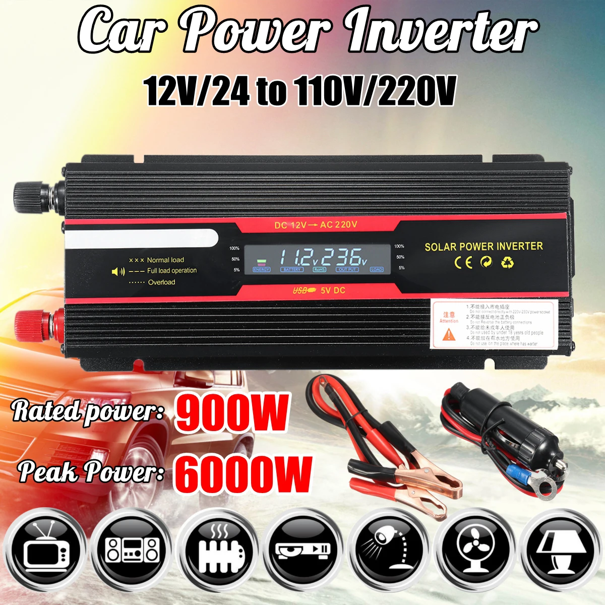 Автомобильный инвертор, 12 В, 220 В, 6000 Вт, P eak, инвертор солнечной энергии, ЖК-дисплей, DC 12 24 В в AC 110 В220 В, модифицированный синусоидальный преобразователь