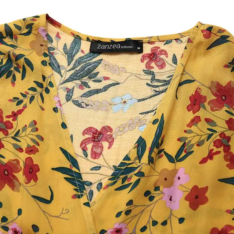 Элегантные летние майки, Женская Цветочная блузка 2022 ZANZEA, повс...