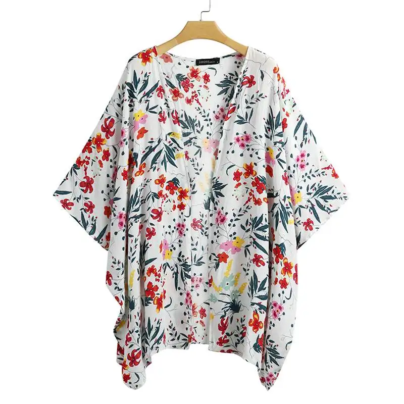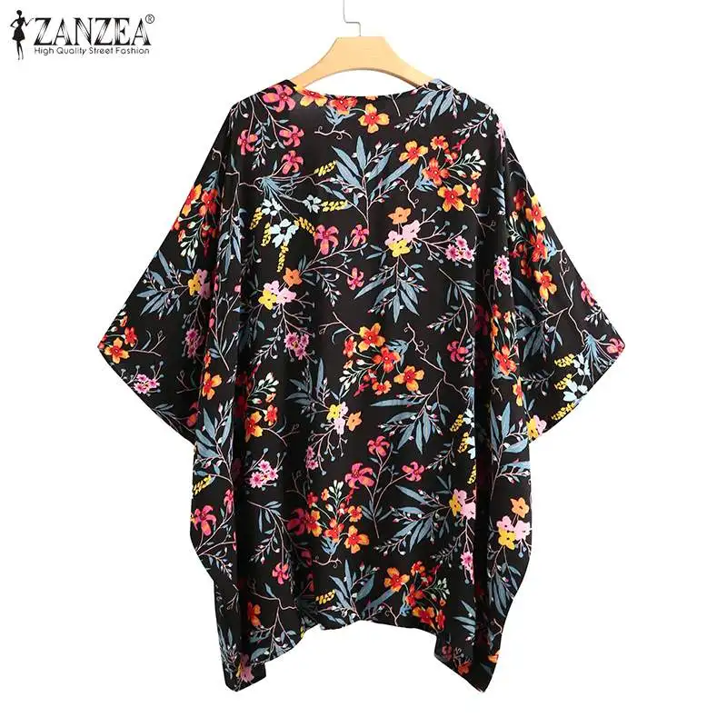 Туника ZANZEA Женская в стиле оверсайз с принтом, модное летнее кимоно, накидка с цветочным рисунком, кардиган, Женская Повседневная накидка с открытой строчкой