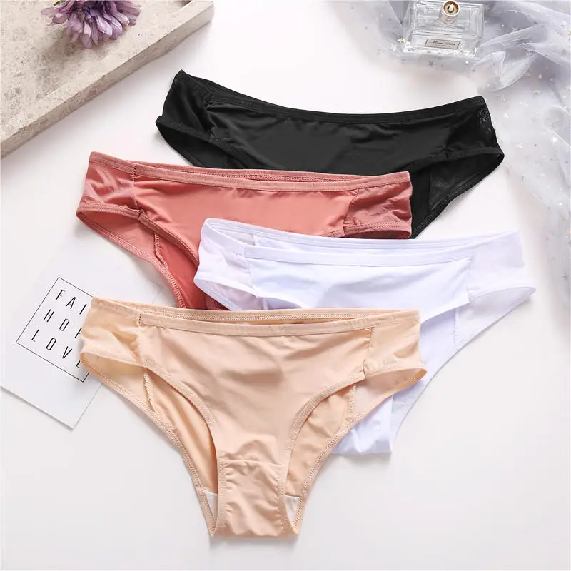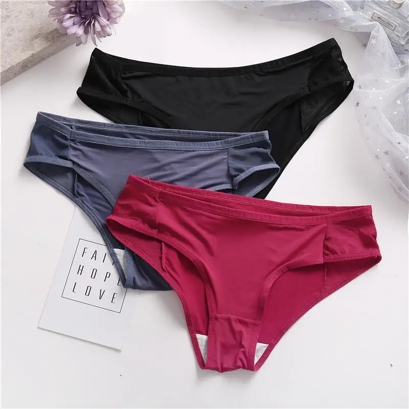 Трусики для женщин 3 шт.компл., лот, бесшовное гладкое нижнее белье, интимное белье для девушек, брифы со средней посадкой, однотонные брифы
