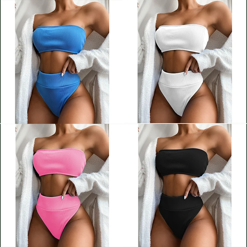 Женский купальник с высокой талией, бикини в рубчик, винтажный купальный костюм, 2020