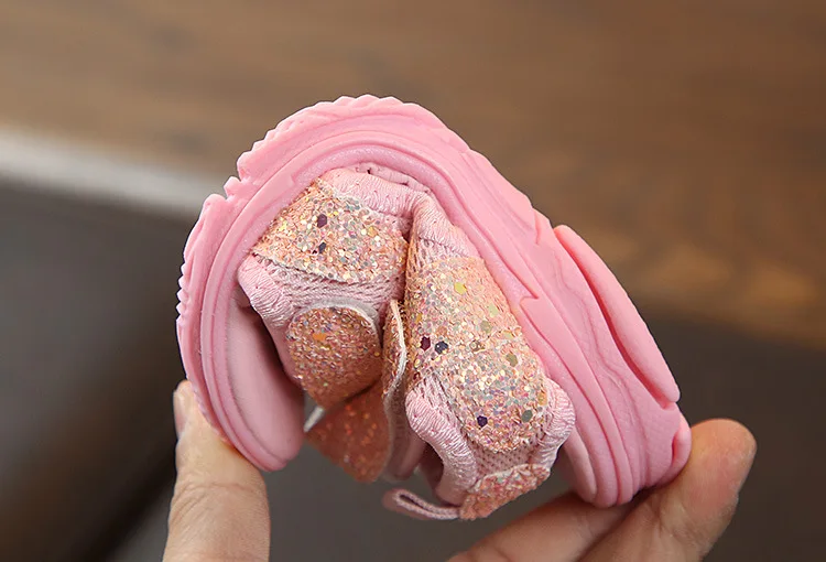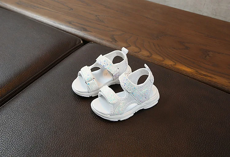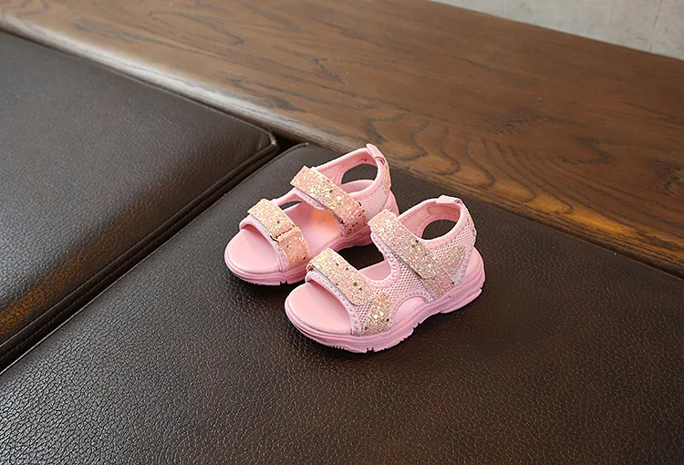 2021 новые детские сандалии для девочек из дышащего материала, Сетчатое платье с блестками для детей ясельного возраста; Сезон лето; Обувь на толстой мягкой подошве; Нескользящая; Пляжные туфли для девочек 9 months to 3 years Old