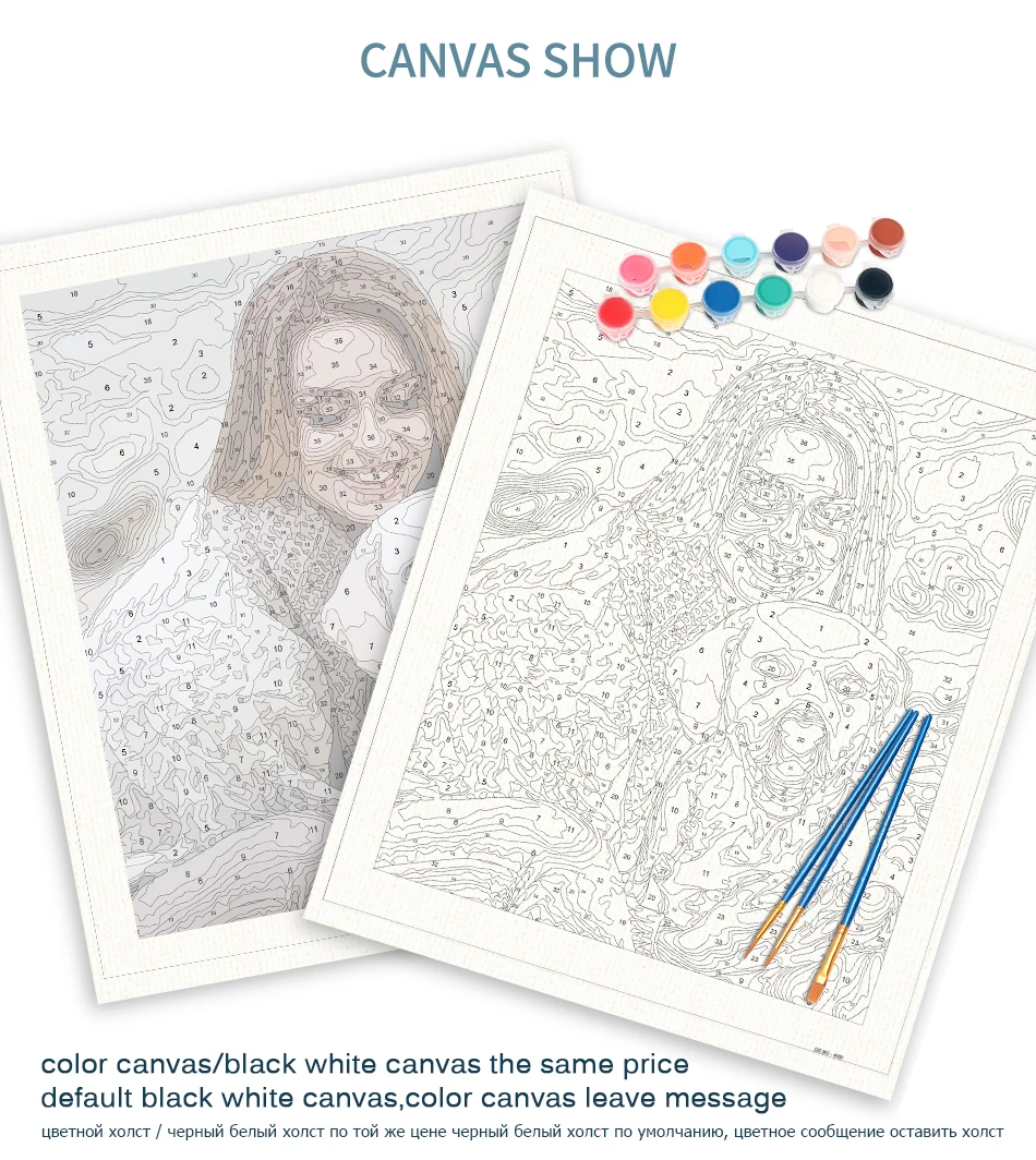 Прибыл персонализированные холсты очень точные в деталях. Три кисти в комплекте, я уже сделал заказ с этим продавцом, и результат был фантастическим. Настоятельно рекомендуем!