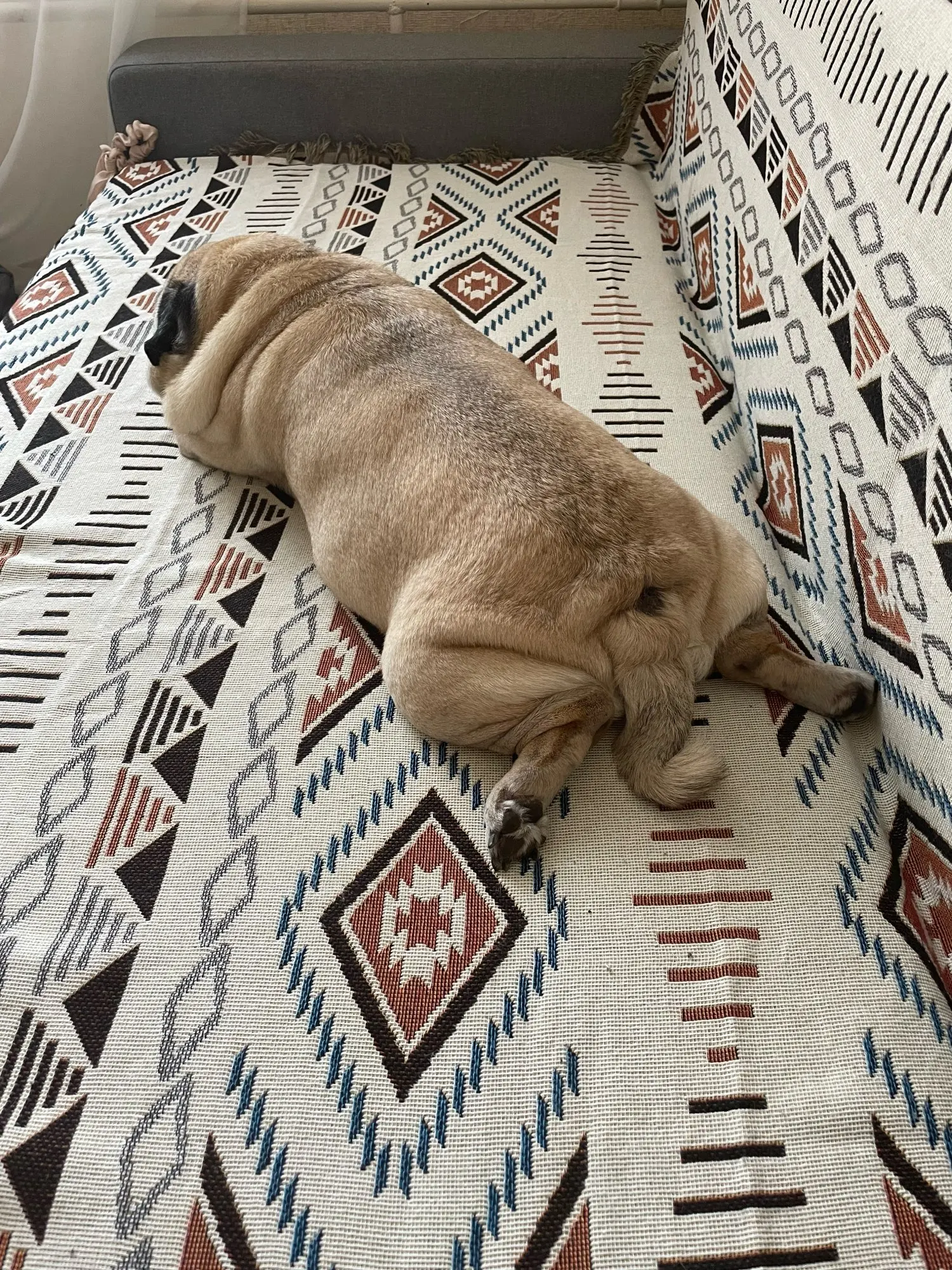 Плотное тяжелое покрывало. Отлично укрыло мой диван от животных и пыли. Как плед бы не рекомендовала, в остальном, отличная накидушка, приехала очень быстро.