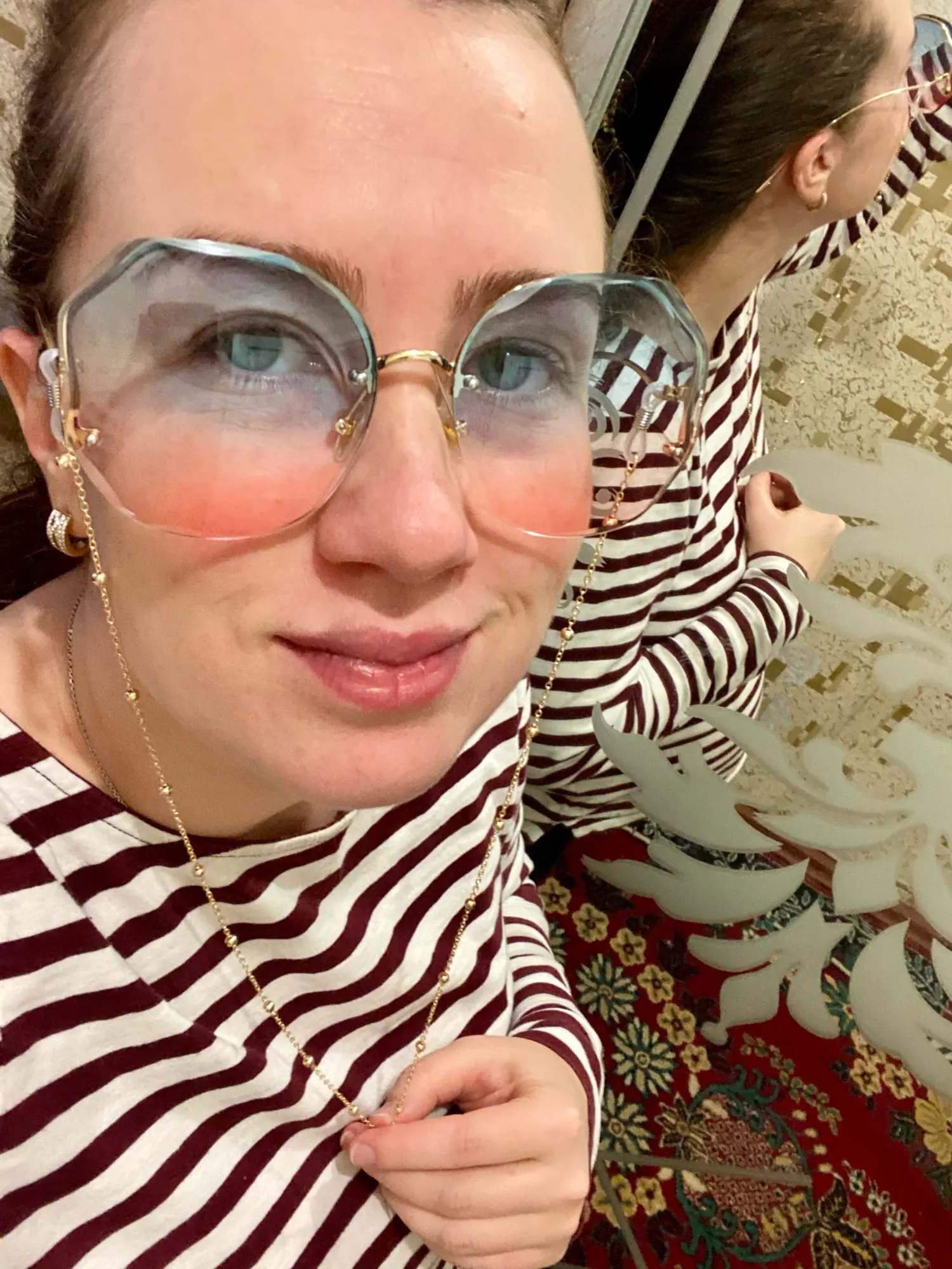 Очки выглядят хорошо но мне не подошли так как очень маленькое расстояние на переносице. Не подходят для широкого лица.