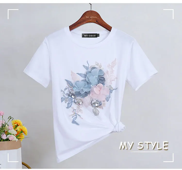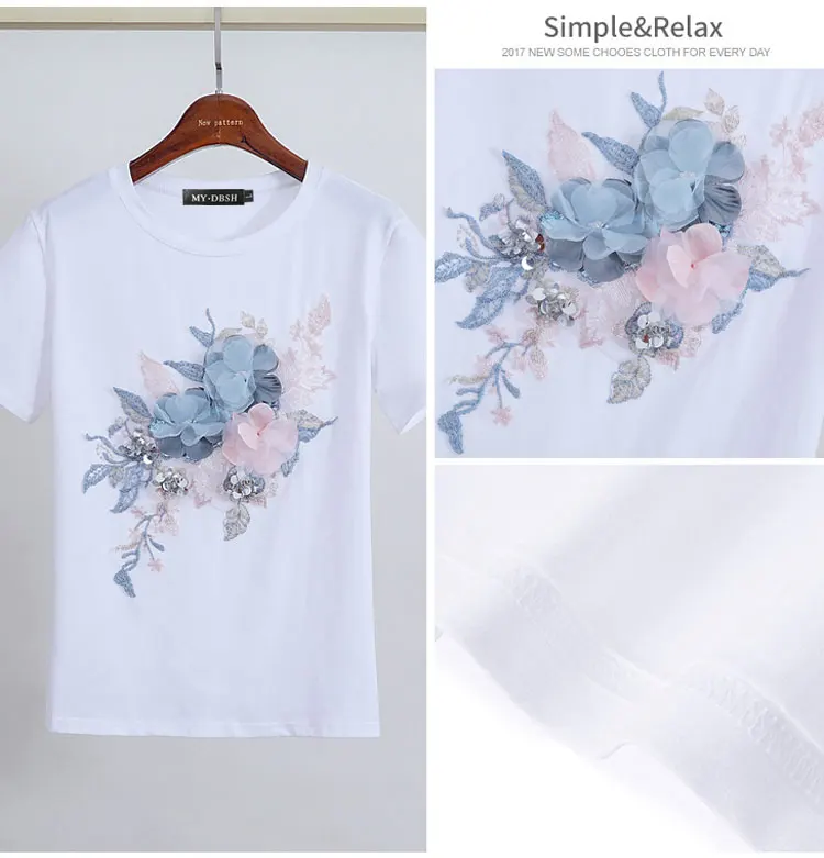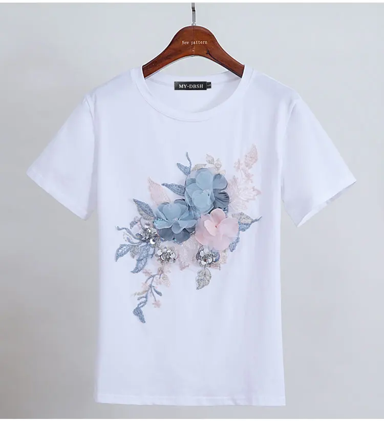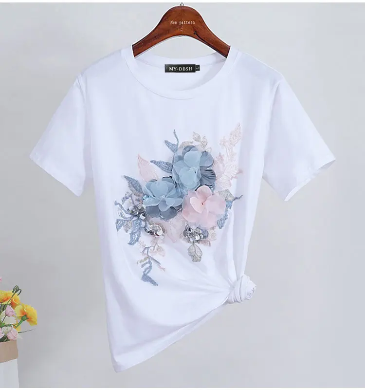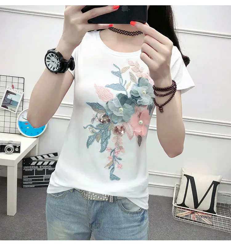 Женский хлопковый топ с коротким рукавом, элегантный цветочный рисунок, 2021, 5XL, футболка с вышивкой