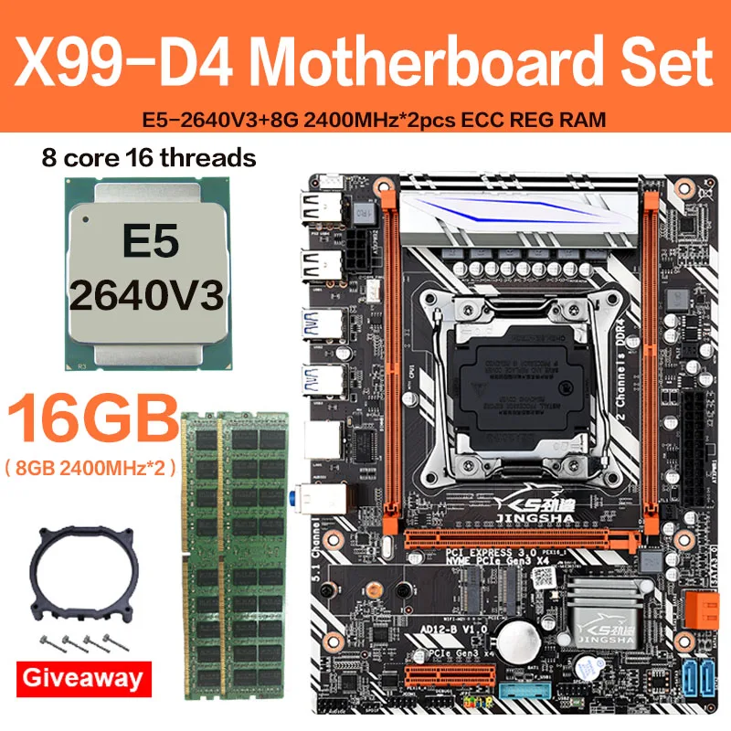 Комплект материнской платы X99 D4 с Xeon E5 2640 V3 LGA2011-3 ЦП 2 шт. X 8 ГБ = 16 Гб 2400 МГц DDR4 память SATA3 M.2