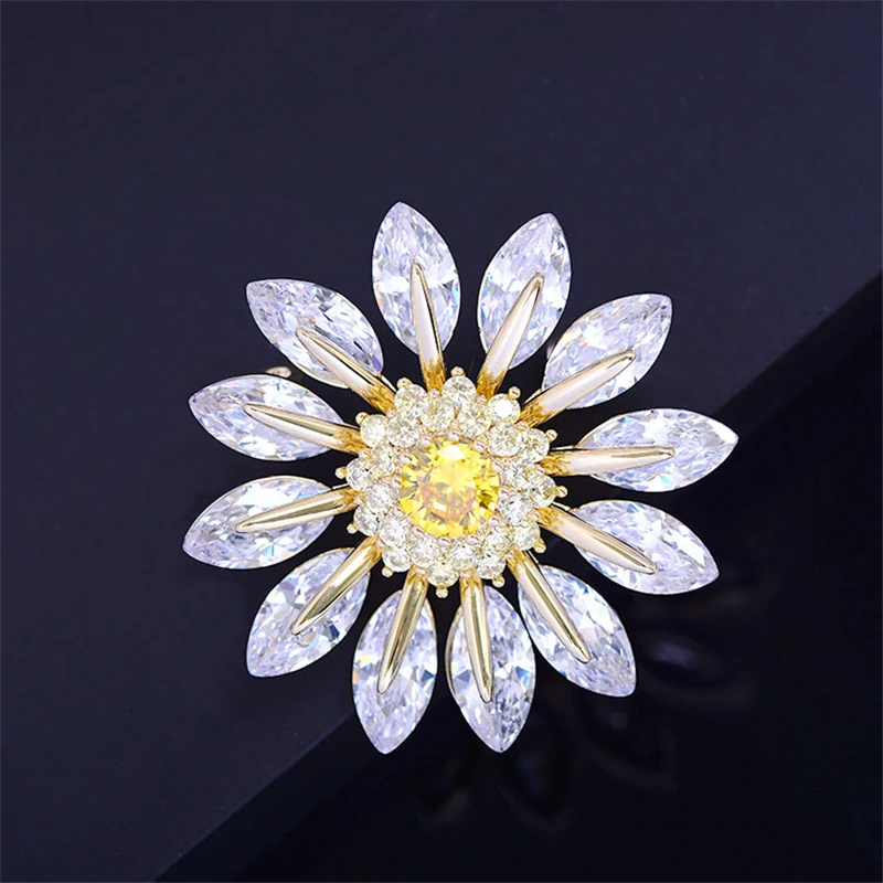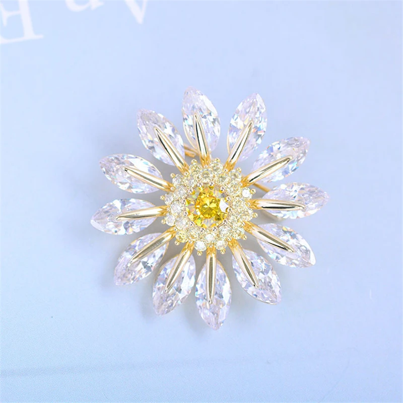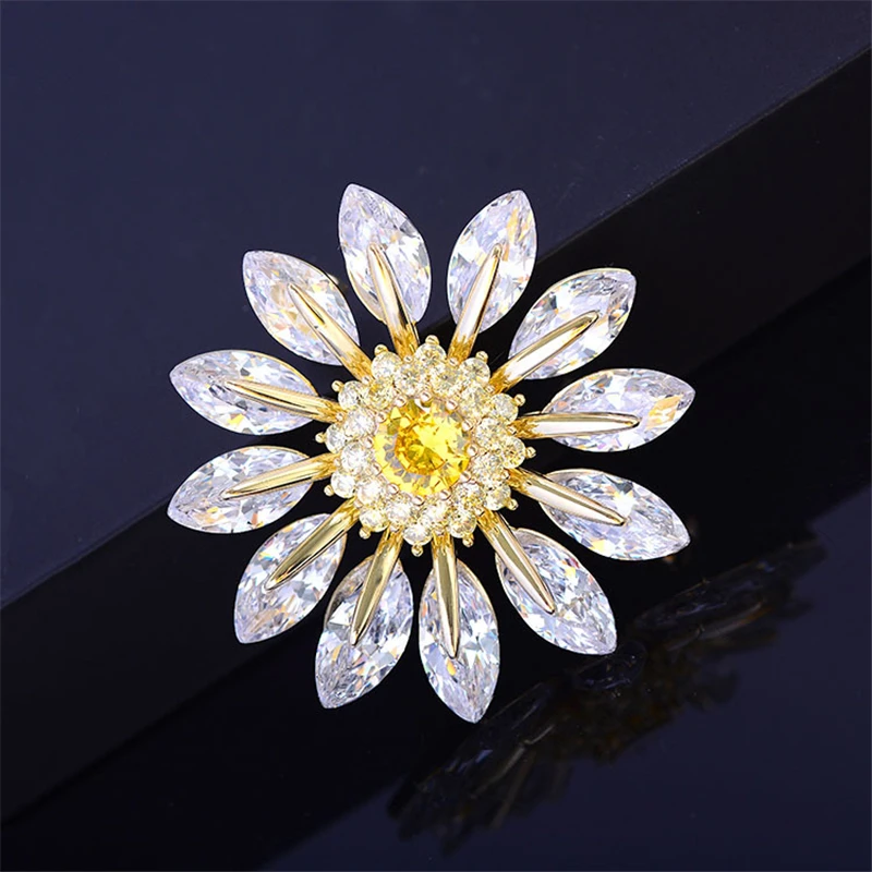 Популярная очаровательная брошь в виде солнечного цветка для женщин, фианит, ромашка, корсаж, аксессуары для одежды, шарф, свитер, брошь в виде подсолнуха