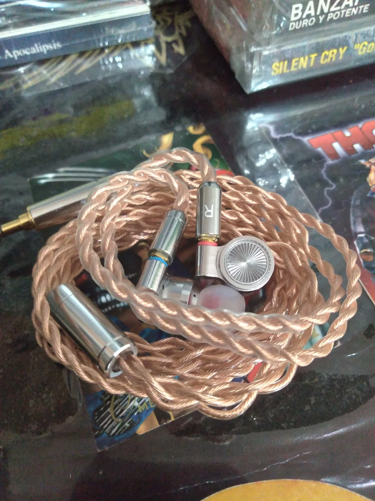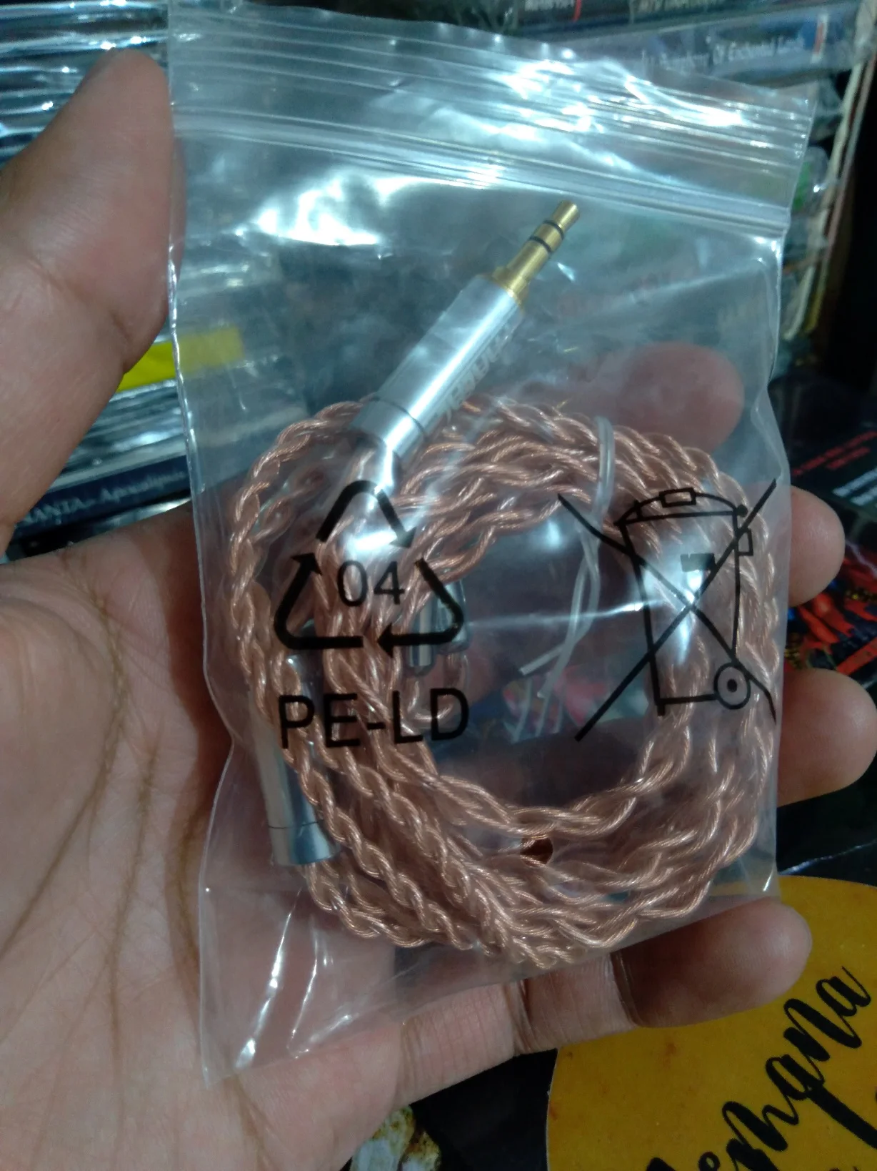 Отличное хорошее качество кабеля, очень прочный, память для уха отличная, заставляет наушники оставаться фиксированными. Я думал, что это будет тонко, но кабель не достаточно толстый, что дает дополнительный. Очень надежный и безопасный продавец. Я думаю, что куплю еще один кабель из них, Отличный Бренд