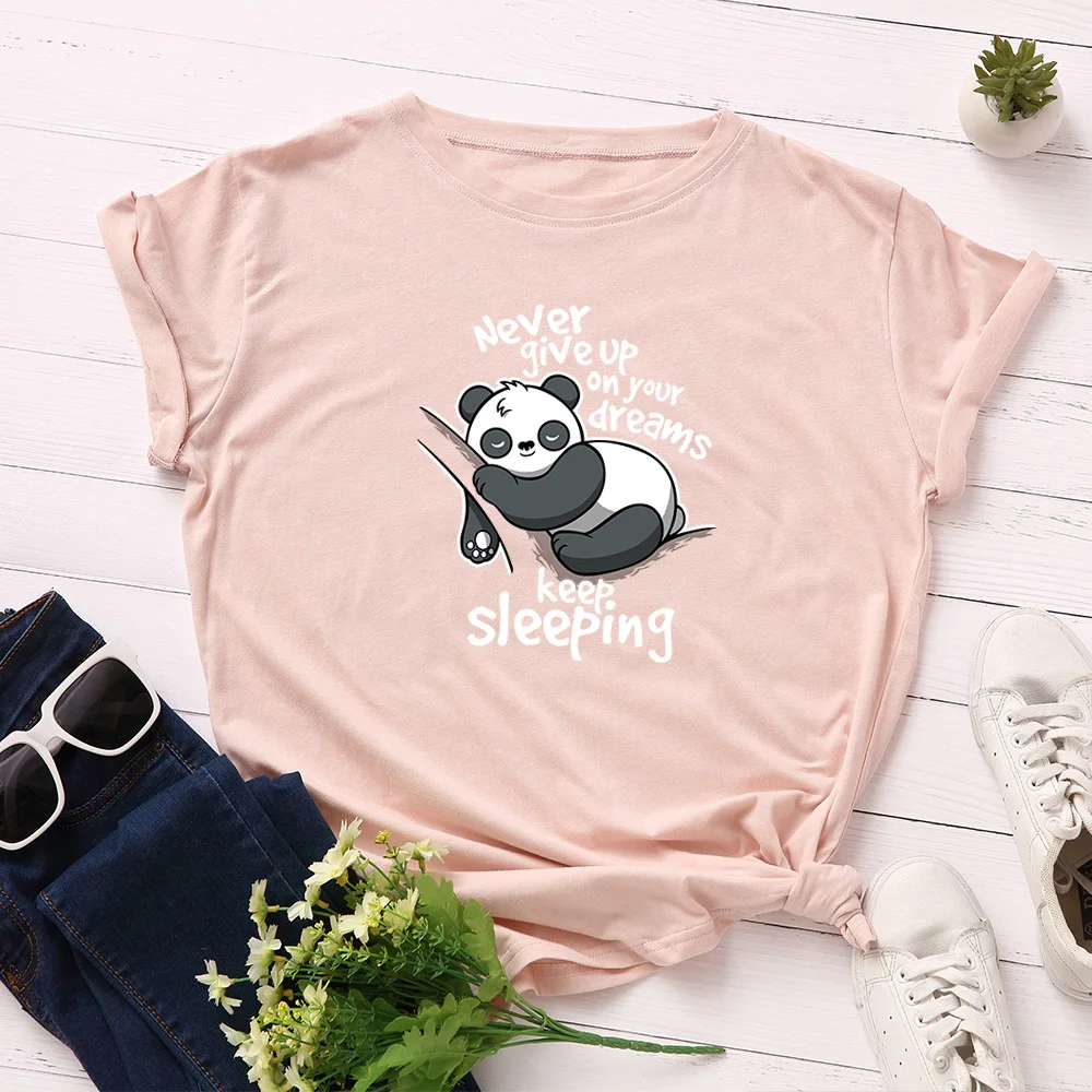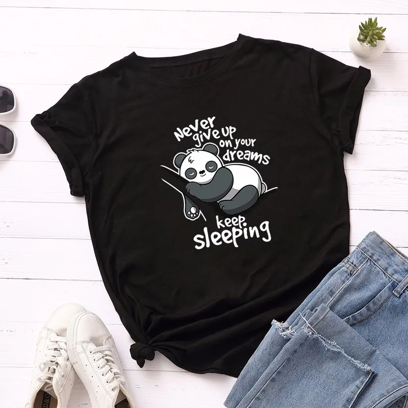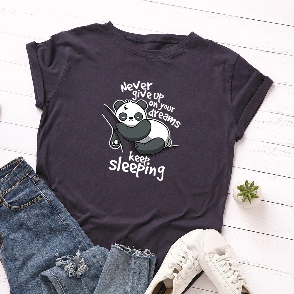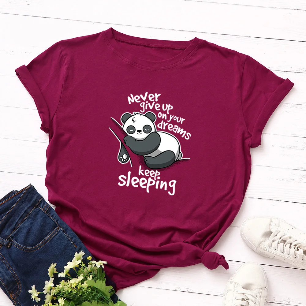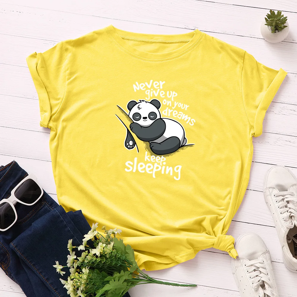 Летняя хлопковая Футболка для женщин, универсальная женская футболка с рисунком в виде милой панды, с коротким рукавом, повседневные Модные топы, футболки