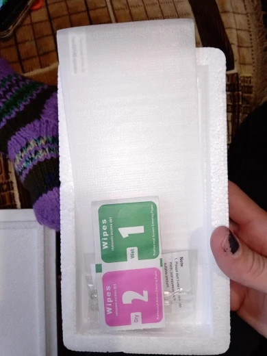 Всё подошло.К салфеткам положены два пузырька толи с клеем,толи с обезжиривателем.
