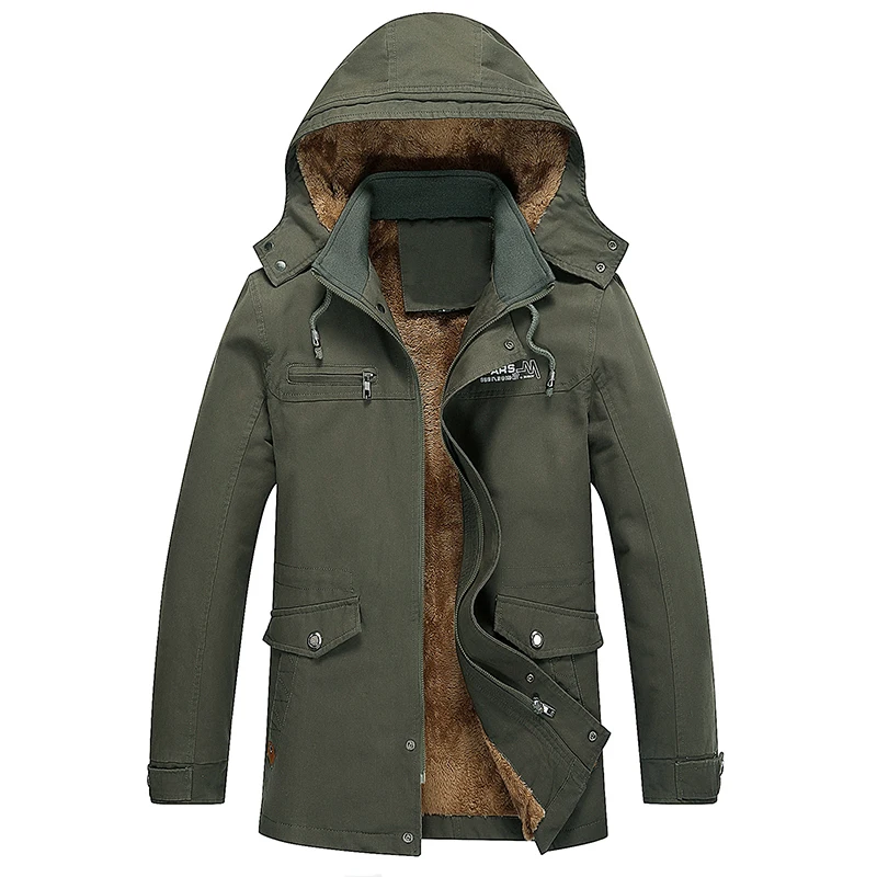 Мужская зимняя длинная куртка с капюшоном и плюшевой подкладкой-25 ...