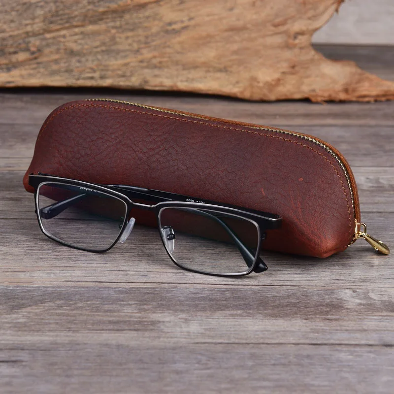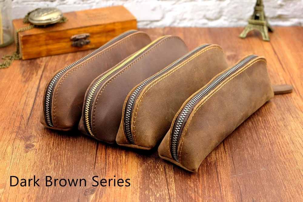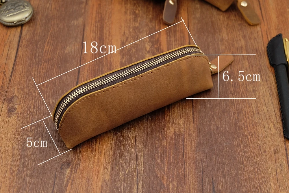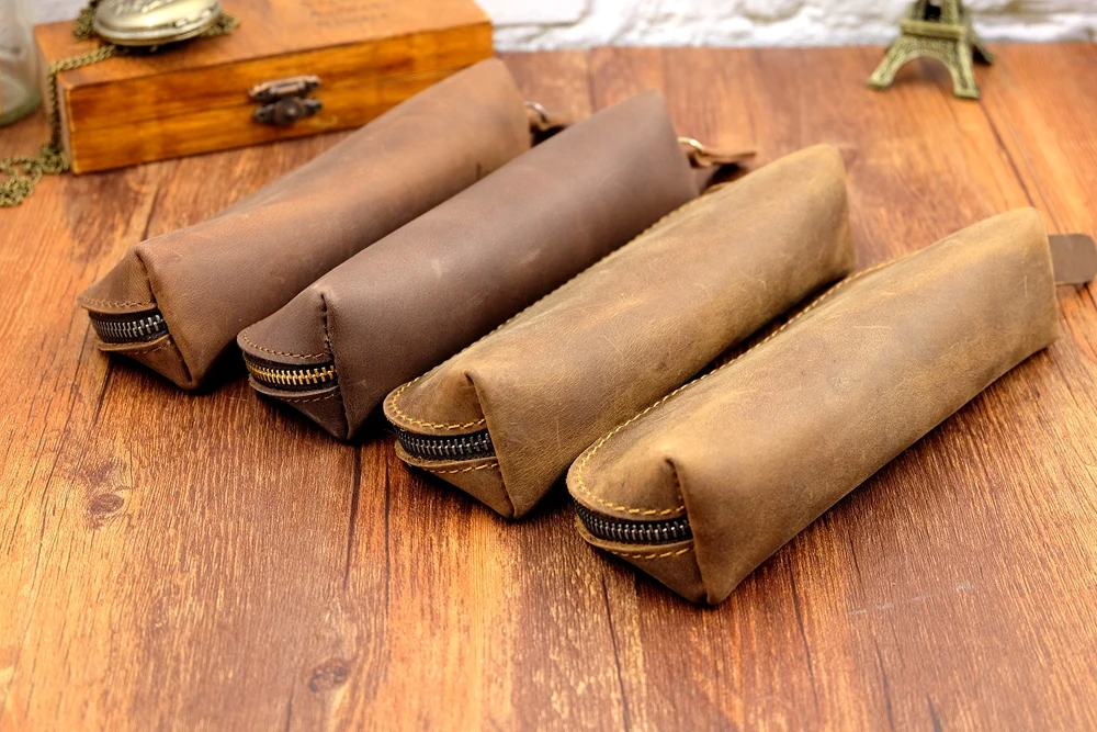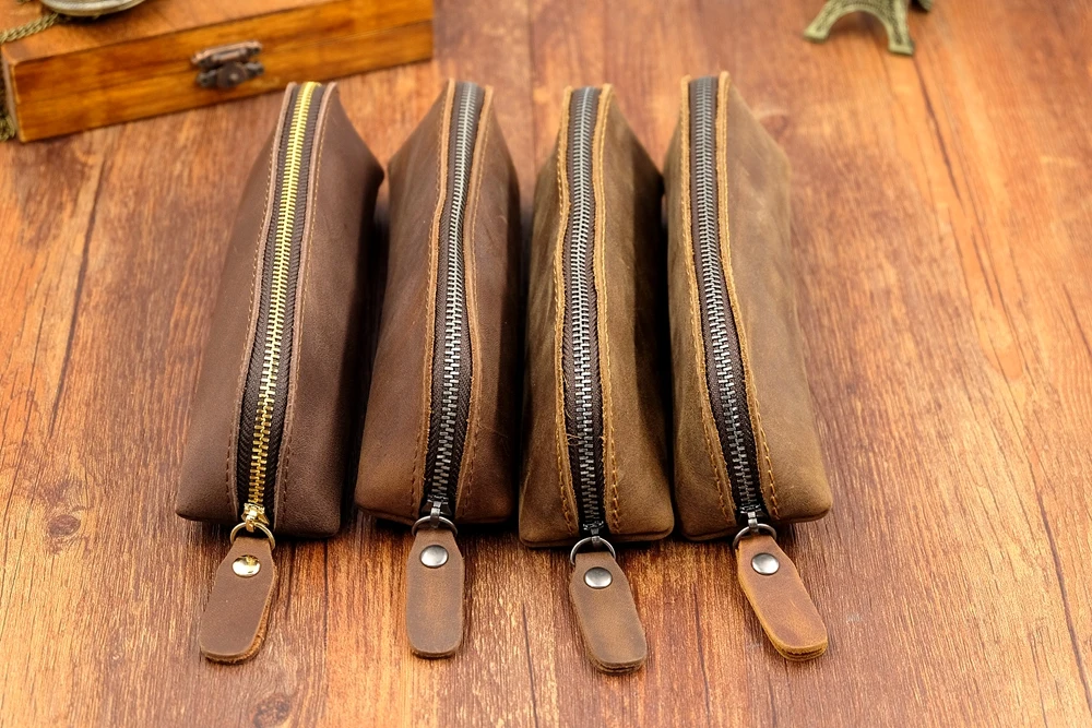 Ретро-сумка для ручек из натуральной кожи, вместительный чехол-карандаш из воловьей кожи на молнии, держатель для очков, чехол из натуральной воловьей кожи ручной работы