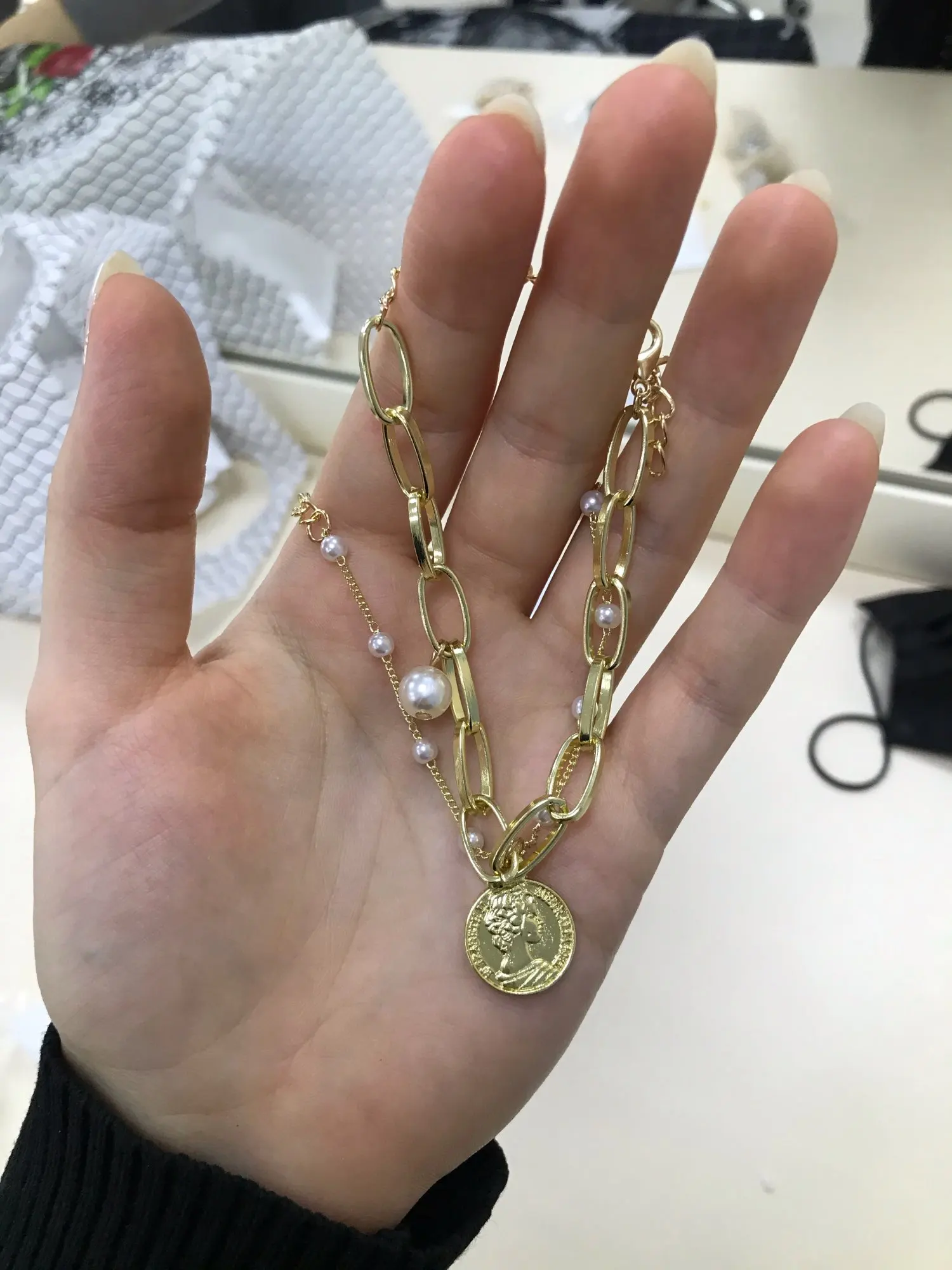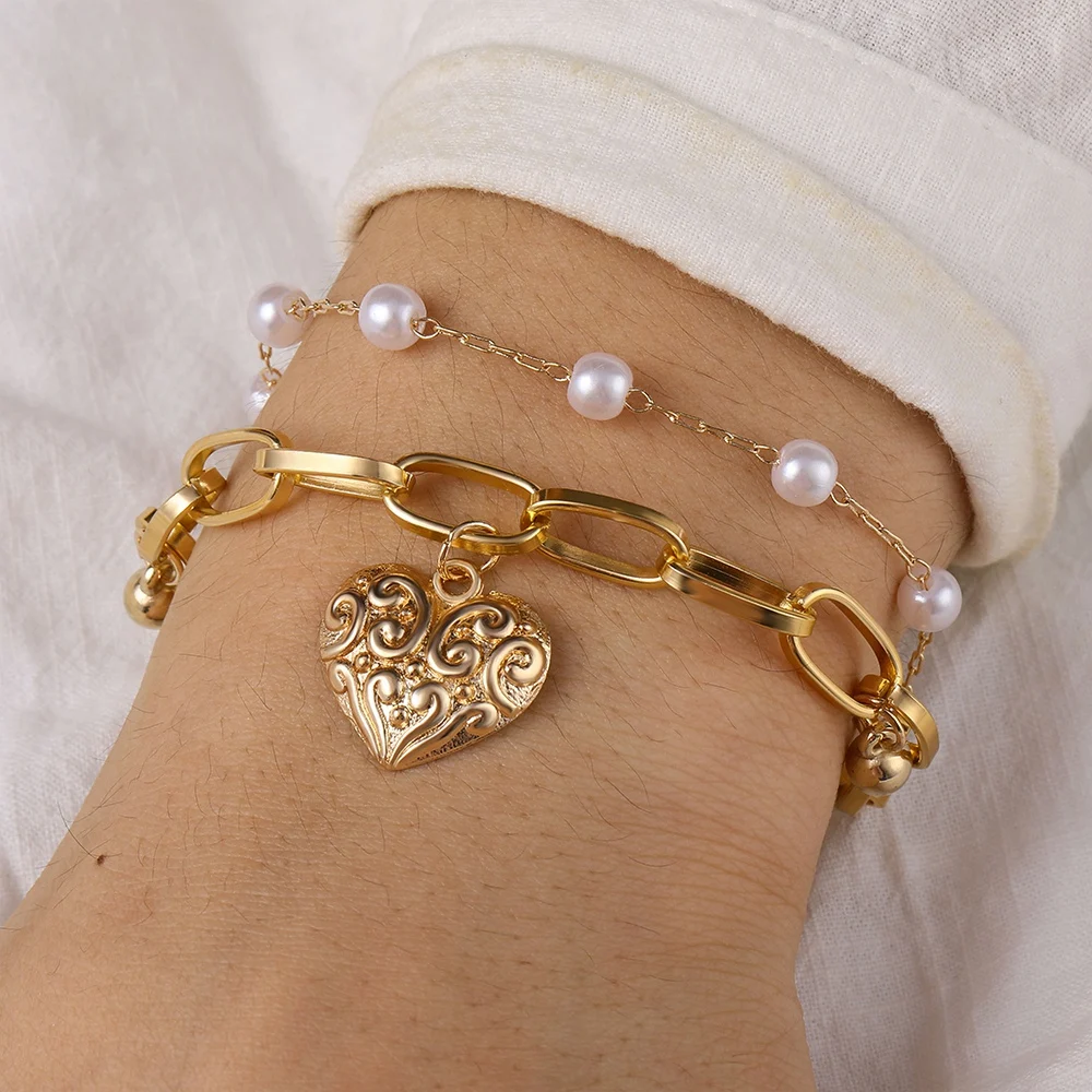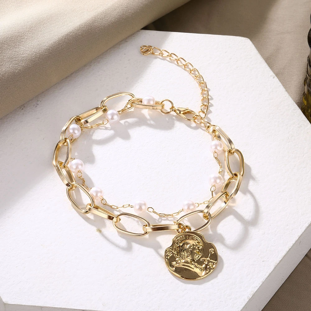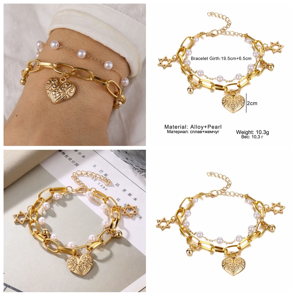 Женские браслеты с подвесками VKME, богемные браслеты из золотых бусин и жемчуга, цепочка с жемчужным кулоном