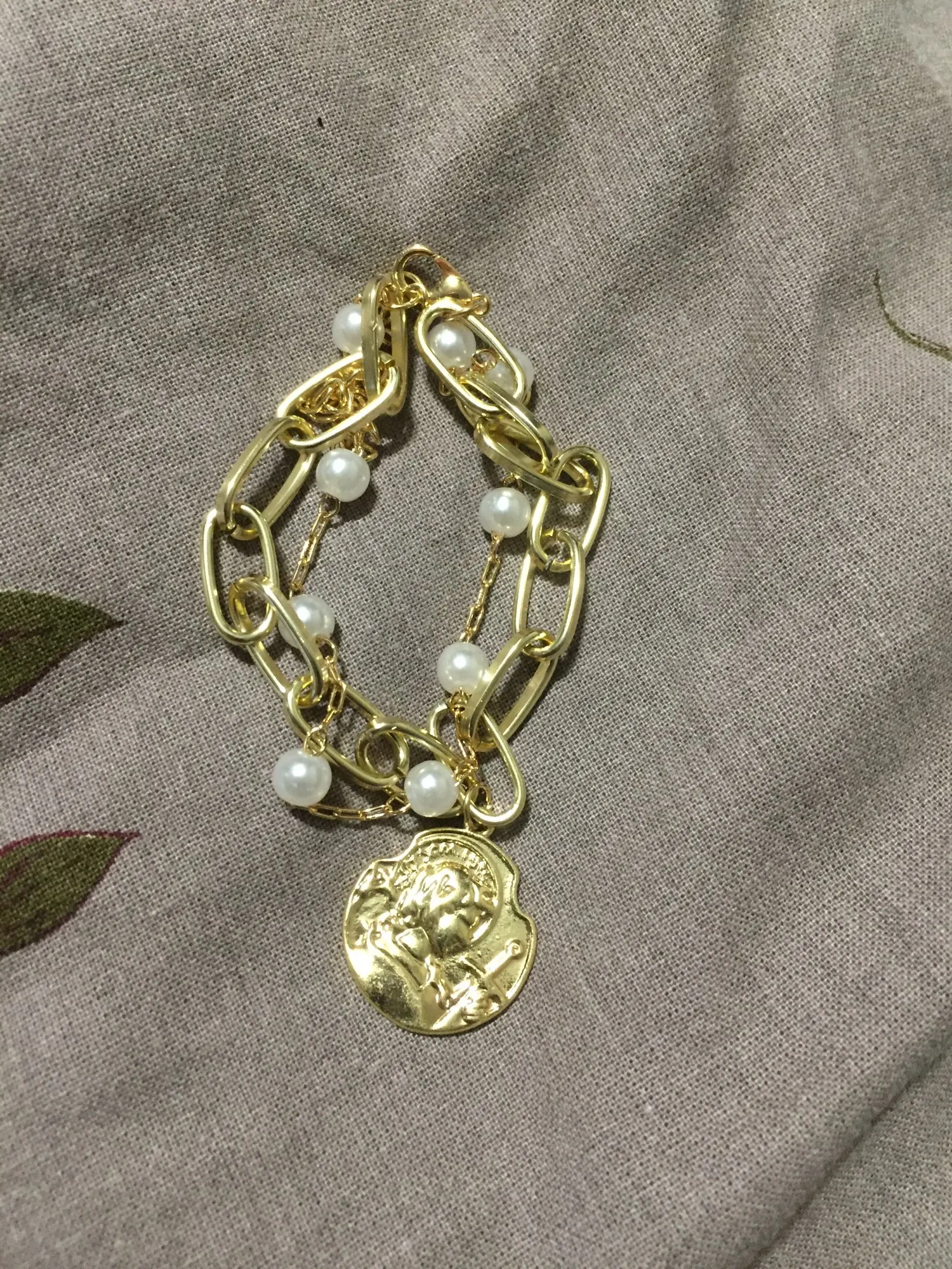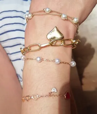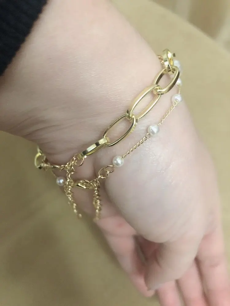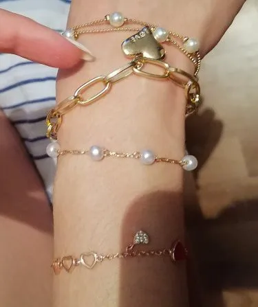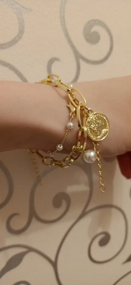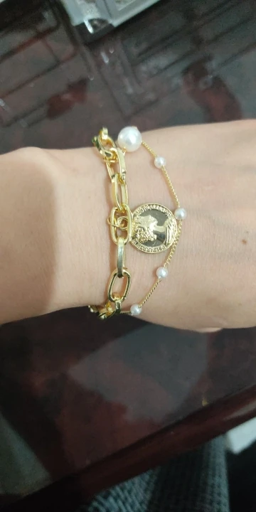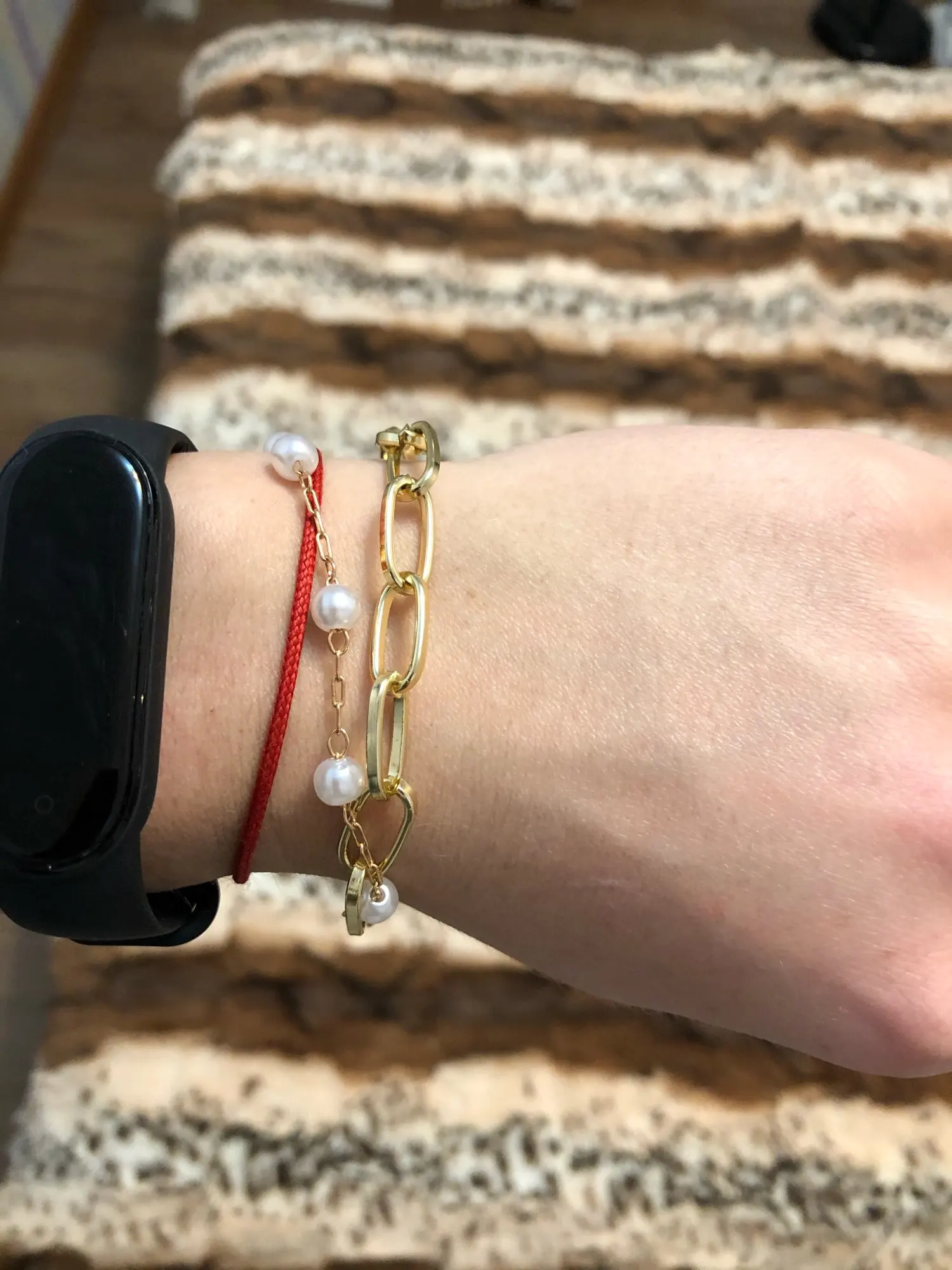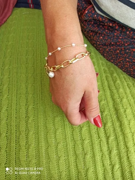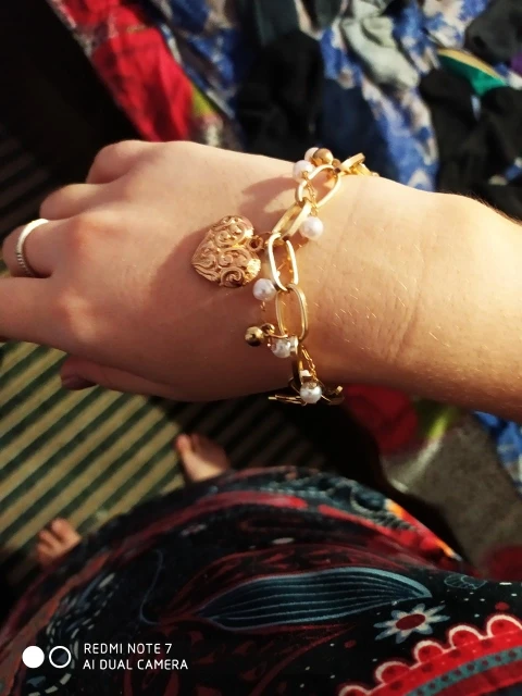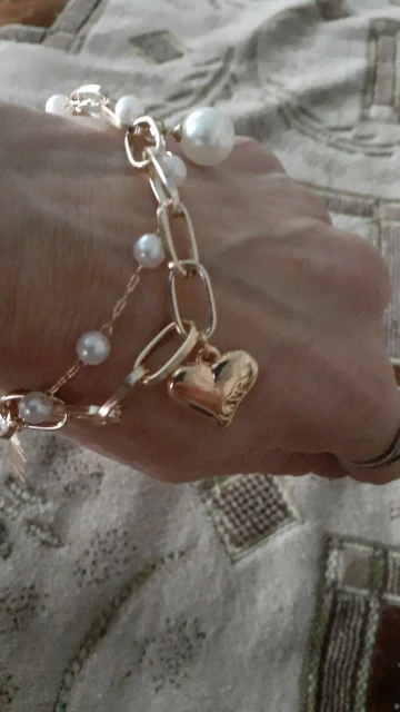 Понравился, мило смотрится, но только браслет с цепью идёт раздельный с браслетом из белых бусин.