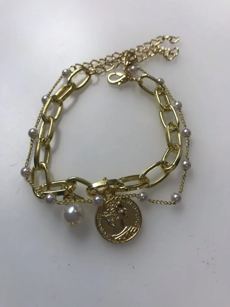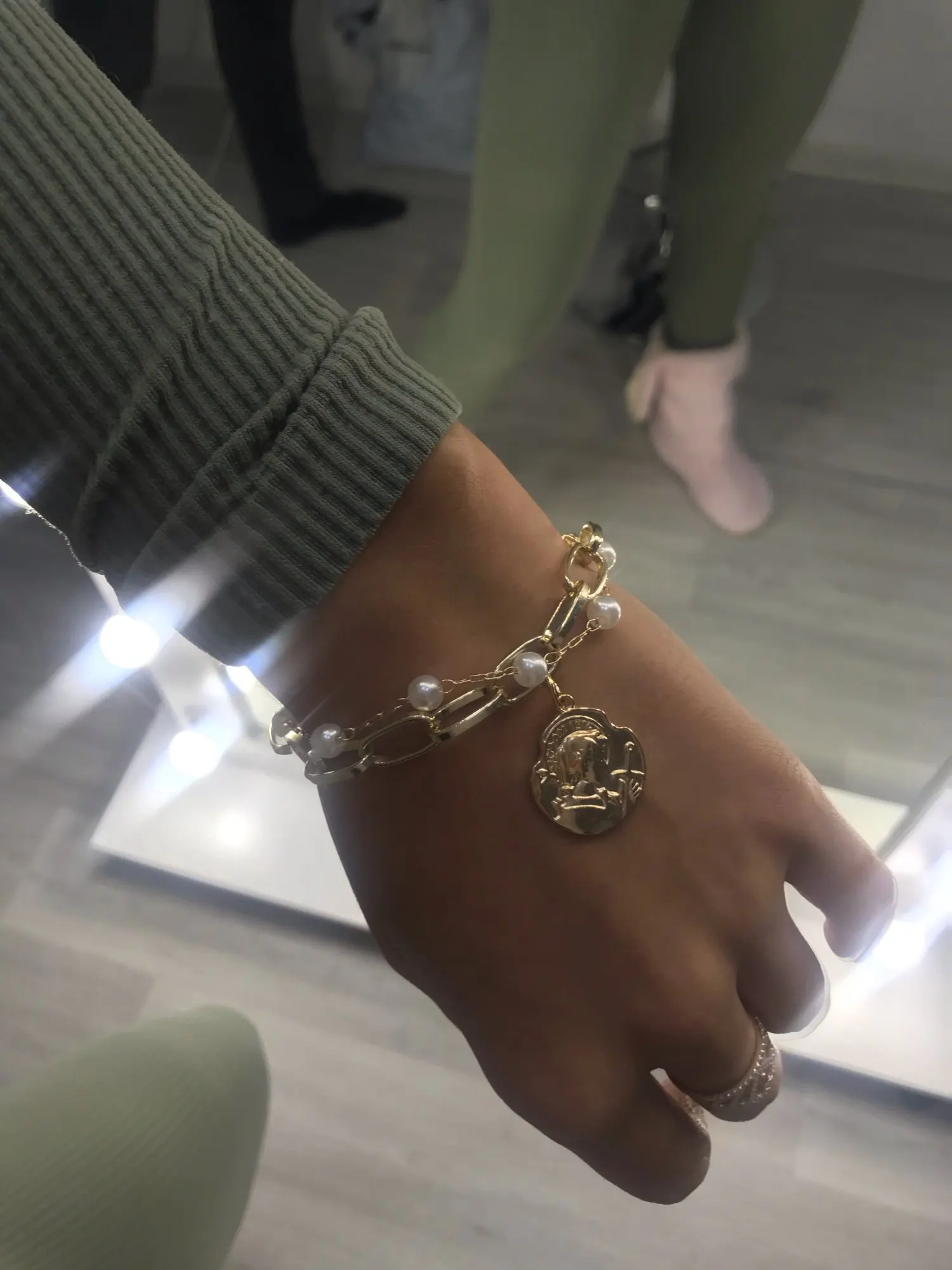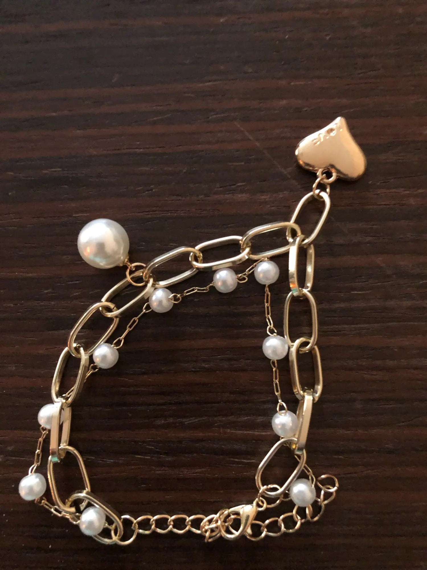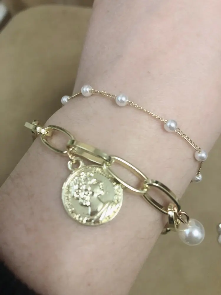 Понравился, мило смотрится, но только браслет с цепью идёт раздельный с браслетом из белых бусин.